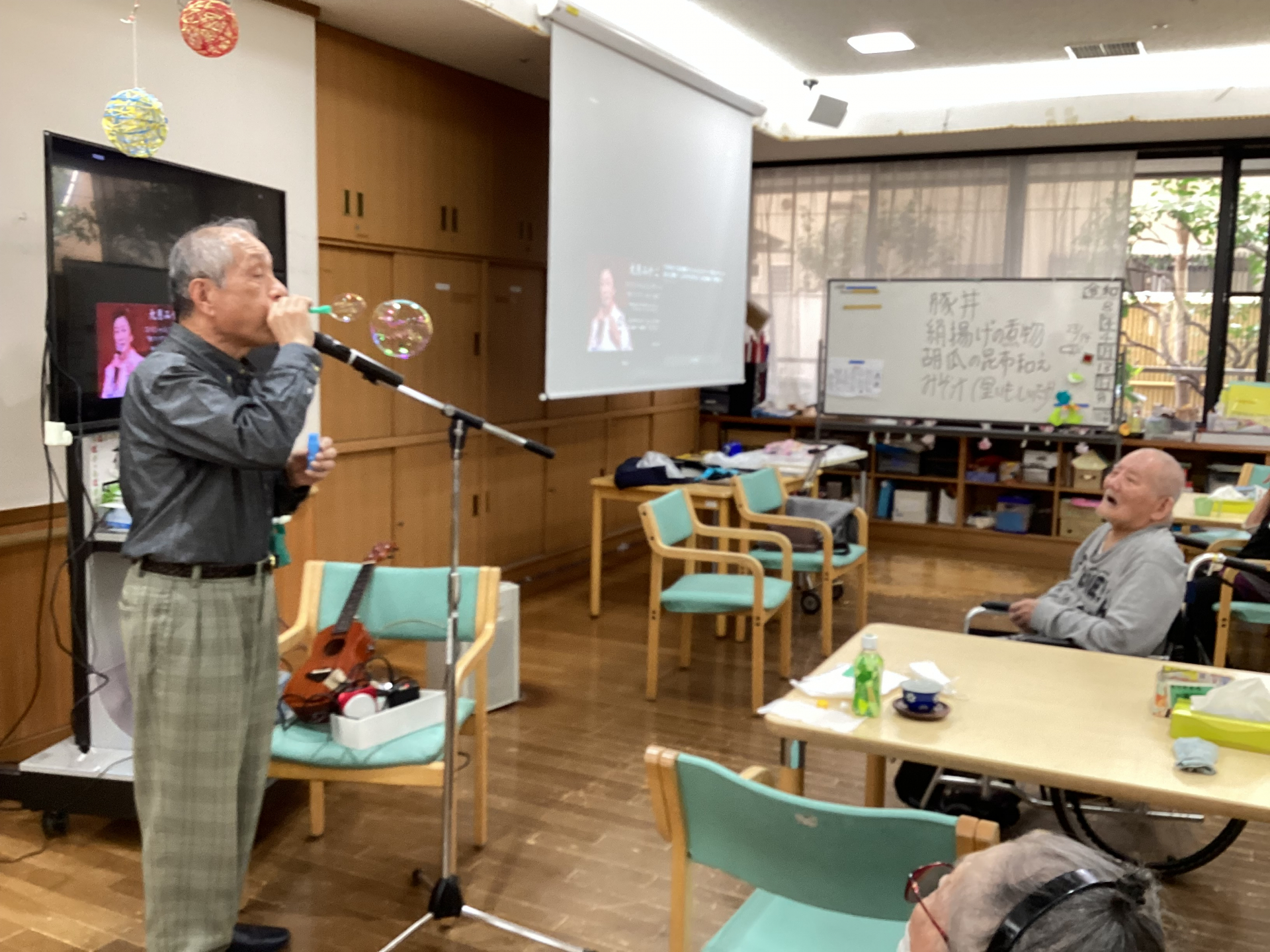 久しぶりに見る綺麗なシャボン玉にも、皆様笑顔になりました。