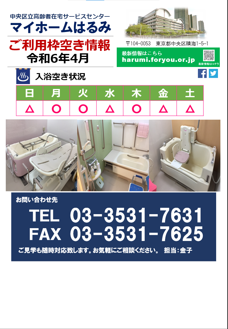 2024.04.25 活動報告 入浴空き状況 Tweet シェアする 入浴空き状況を更新しました。 マイホームはるみデイサービス:橋本 前の記事 2024.04.25 活動報告 踊りの先生が来てくれました! 次の記事 2024.04.25 活動報告 4月空き情報 一覧へ戻る