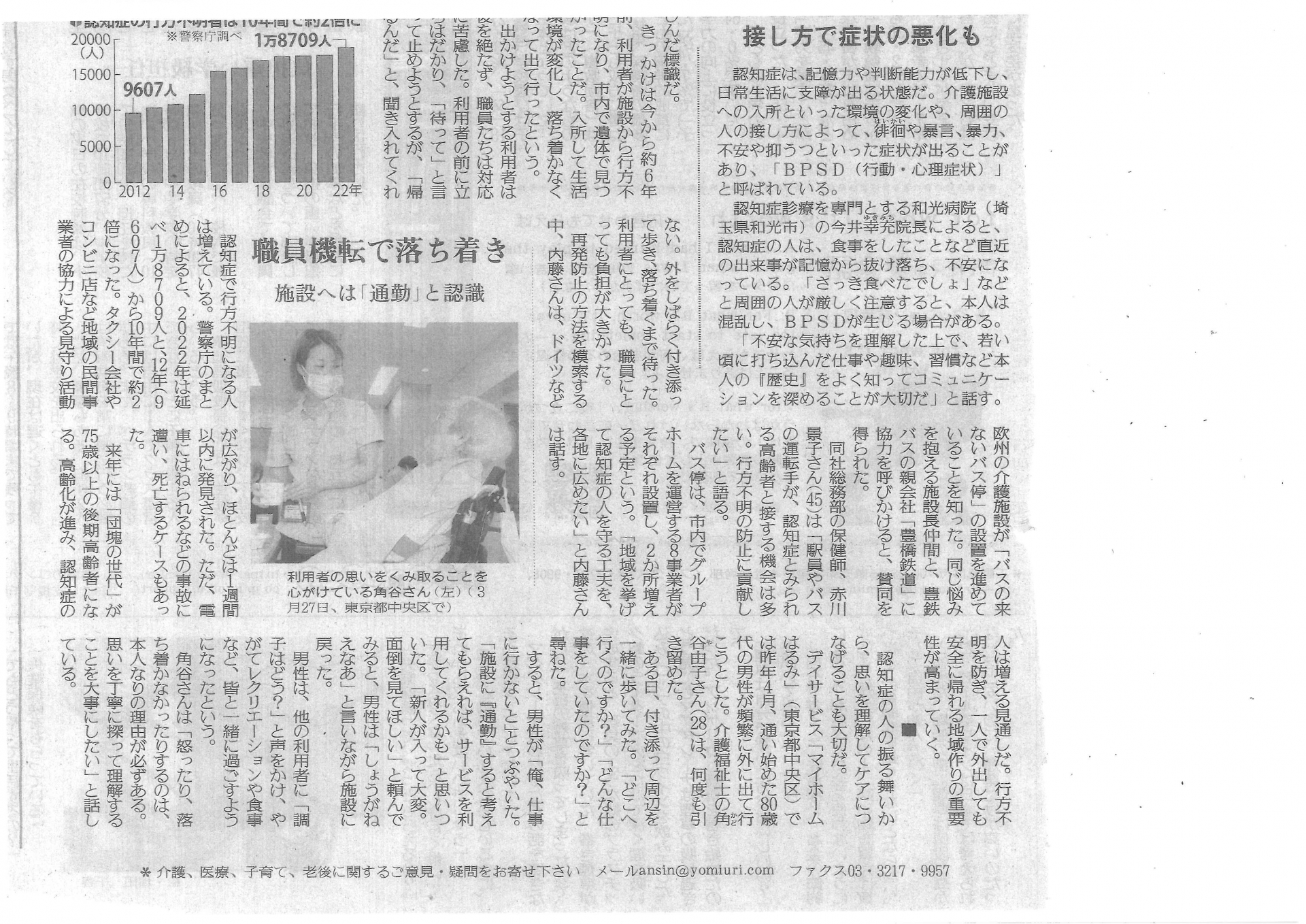2024.05.07 活動報告 【はるみデイ】読売新聞に掲載して頂けました Tweet シェアする 本日の読売新聞の朝刊ではるみが取り上げられました。 本当に奥深い仕事だと思っているので、これからもたくさん勉強し介護を極めたいです! はるみデイ 角谷 前の記事 2024.05.08 活動報告 踊りの先生が来てくれました! 次の記事 2024.04.30 活動報告 全体会議を実施しました。 一覧へ戻る