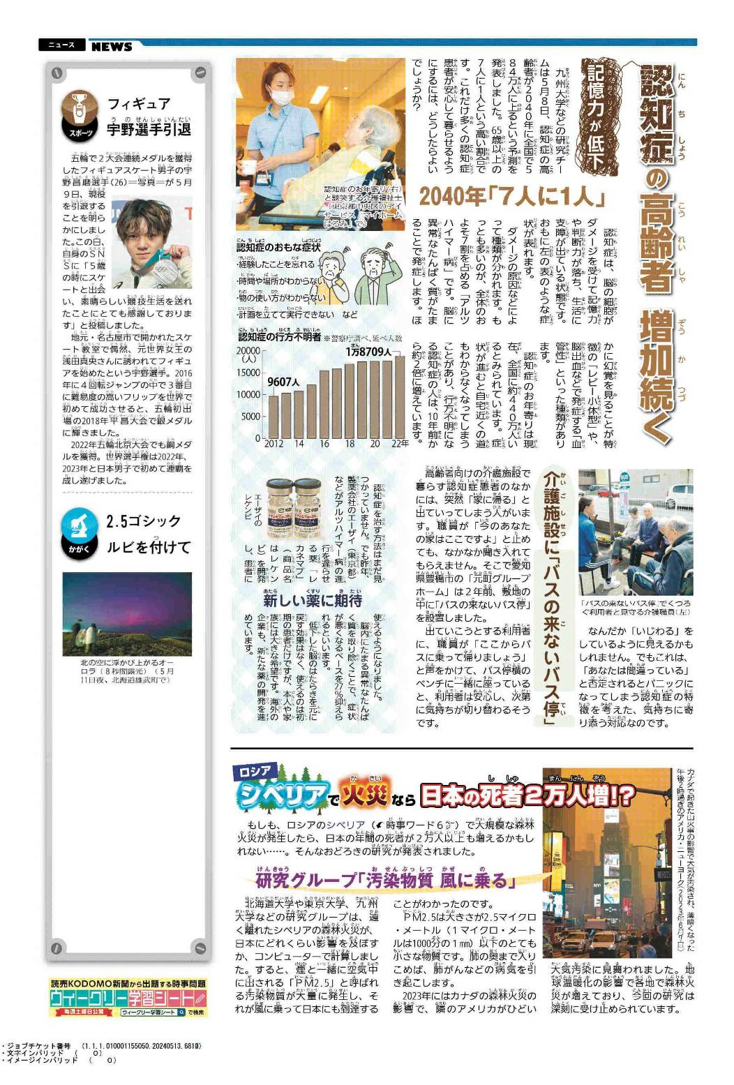 認知症の方が増えているという記事で、たくさんの若い人が高齢福祉の現状などに興味を持ってくれたら嬉しいと思いました。