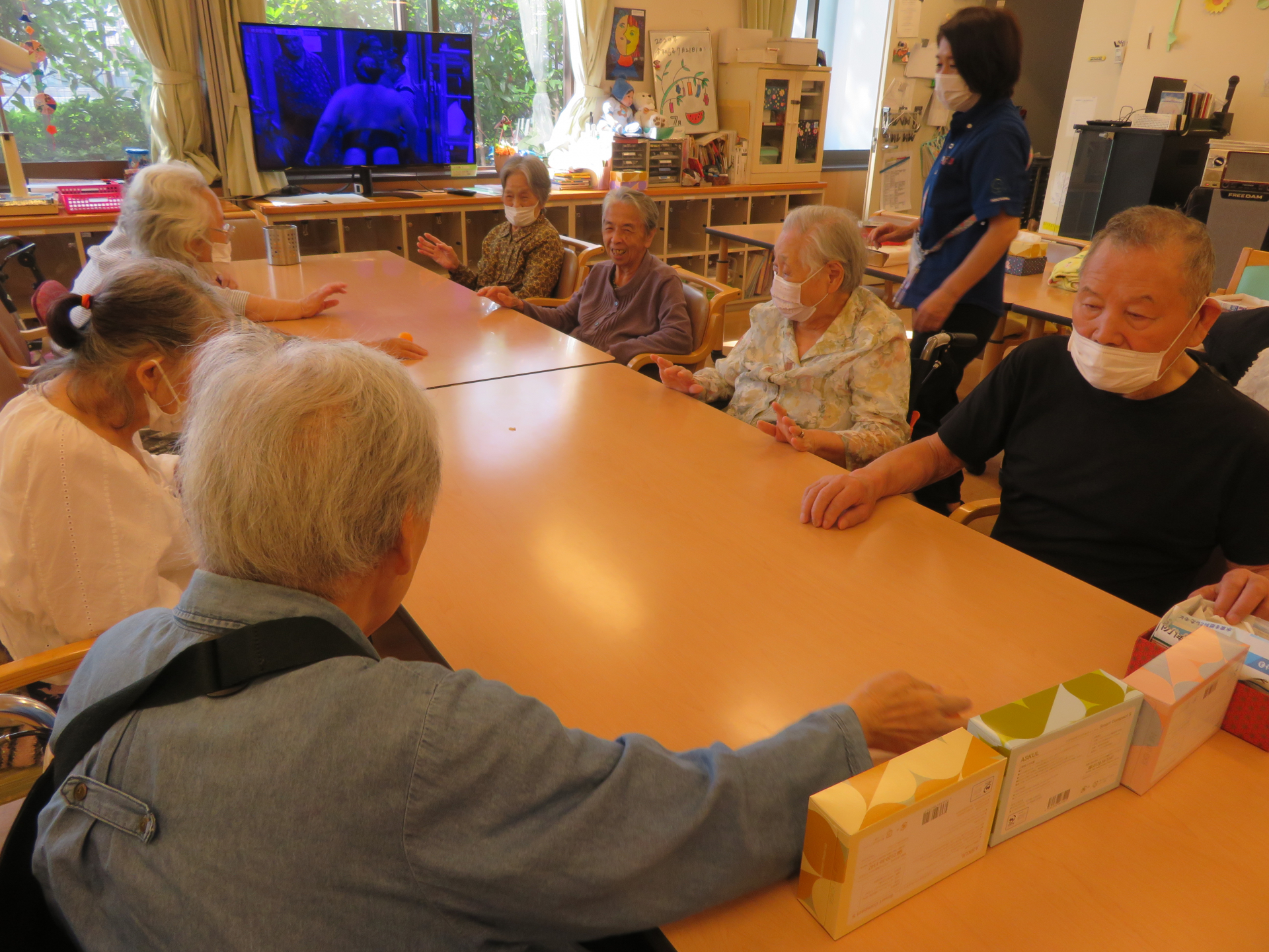2024.07.21 活動報告 みんなでボール遊び Tweet シェアする 夕方認知デイと一般デイの利用者さんが合同で遊びました(*^^*) ピンポン玉を落とさないように次の人に転がして、終始白熱して楽しんでました♪ マイホームはるみデイサービス 飯塚 前の記事 2024.07.21 活動報告 異文化交流 次の記事 2024.07.21 活動報告 綺麗に染まりました(*^^*) 一覧へ戻る