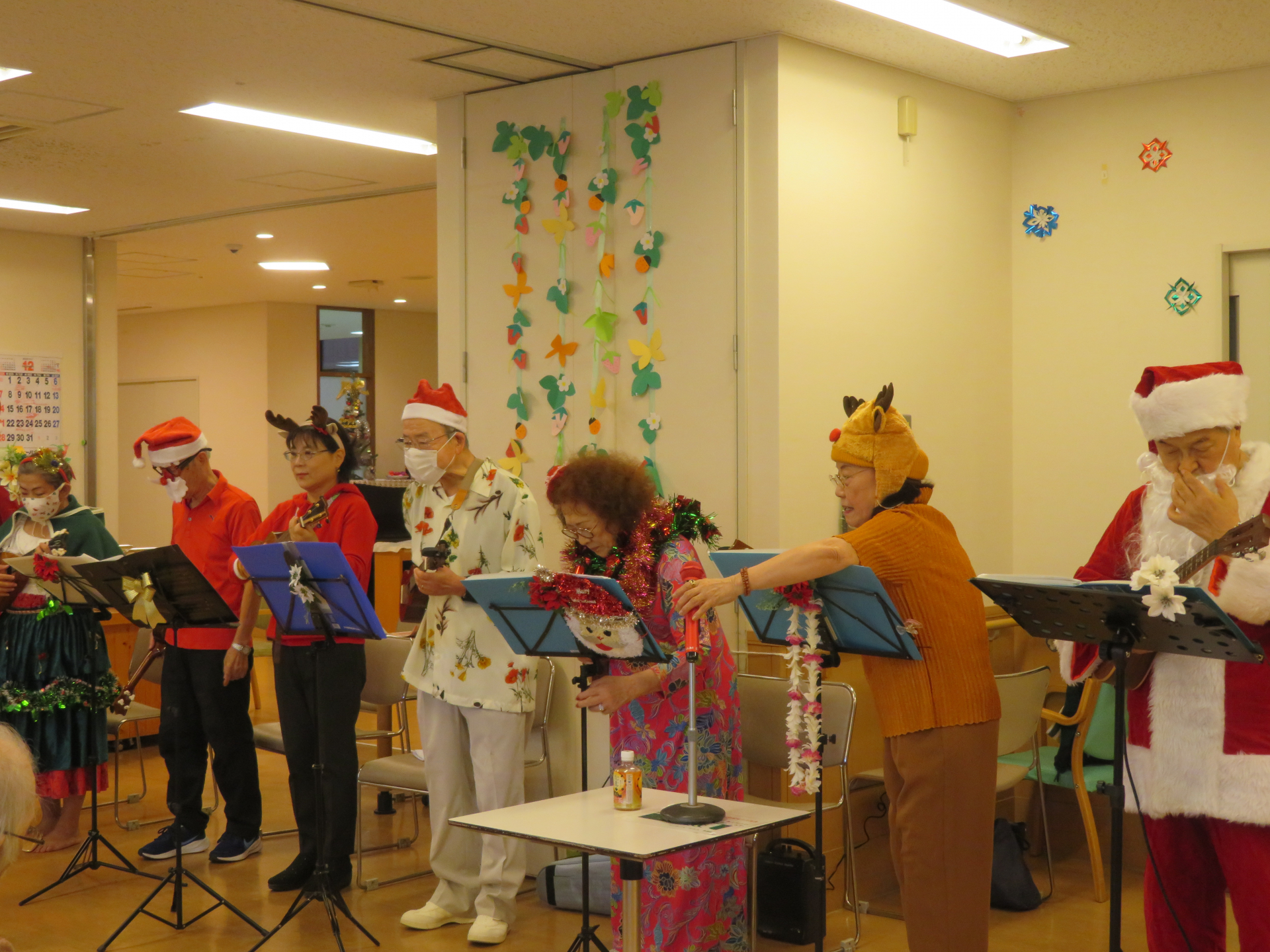 本日はハワイアン風のボランティアさんが来て下さり、懐かしい曲や機器なじみのある曲を演奏し