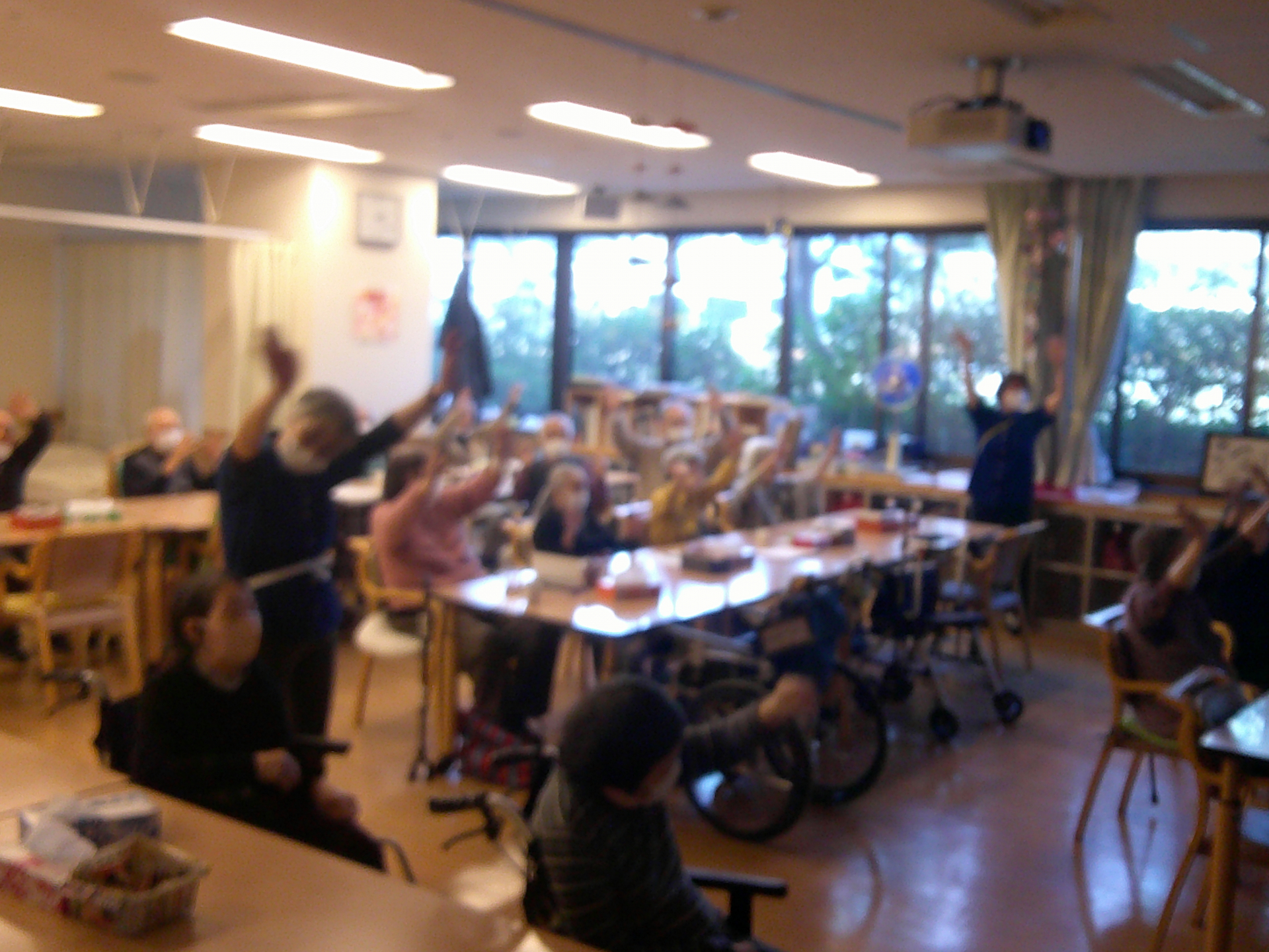 皆さん全員で楽しく踊りました。音楽に合わせて体を動かし、