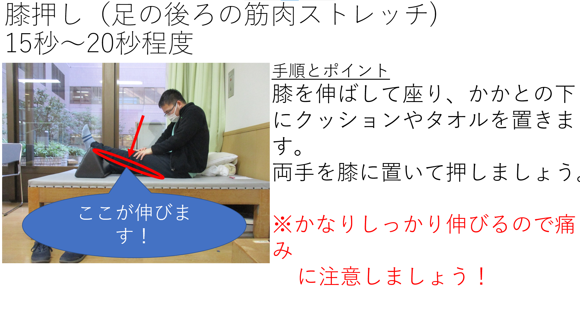 座っている時間が長くなると膝の裏にあるハムストリングスという筋肉が硬く、短くなります。