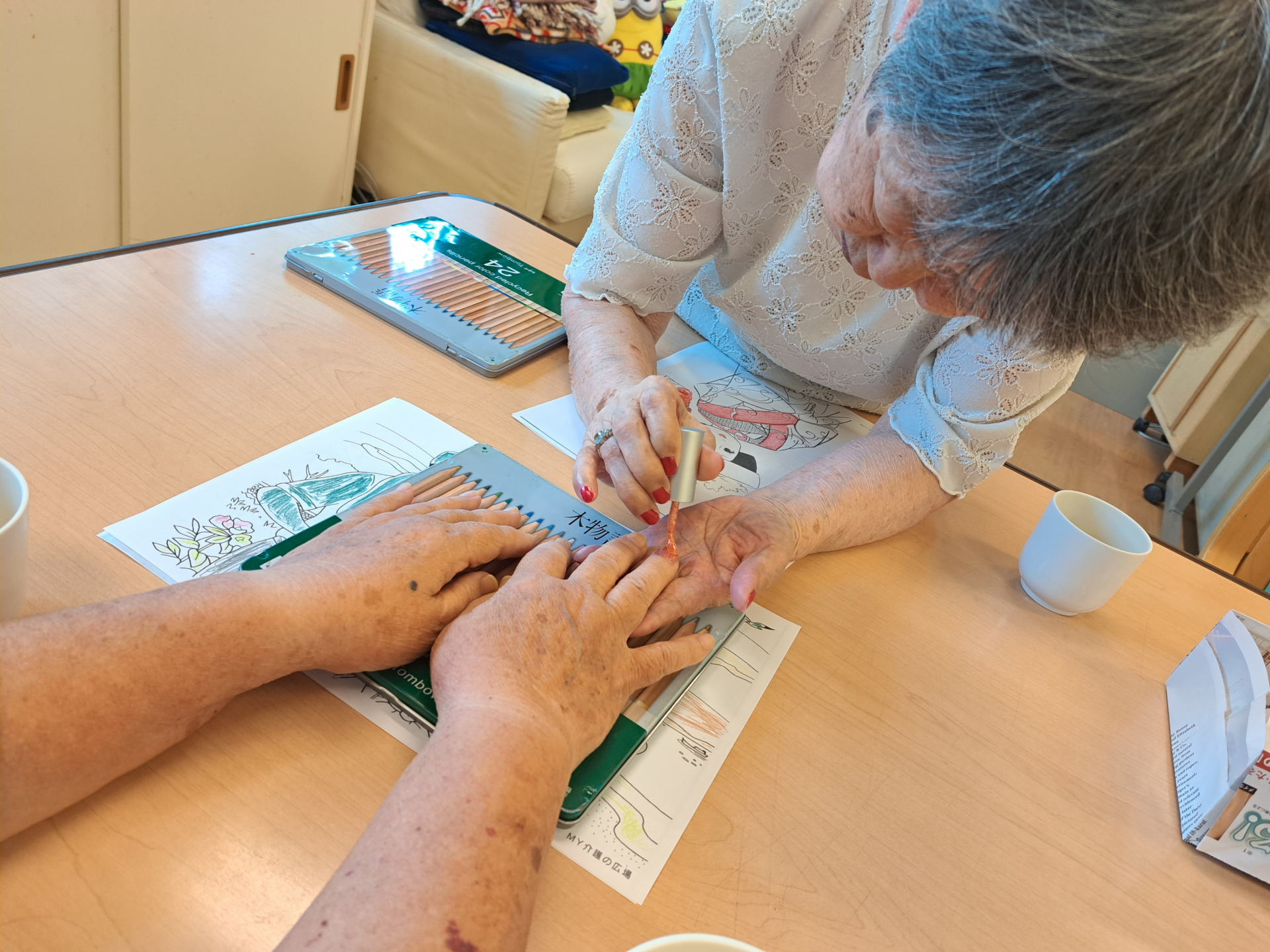 ぬり絵好きが転じてネイルにはまっている利用者さんがいます。