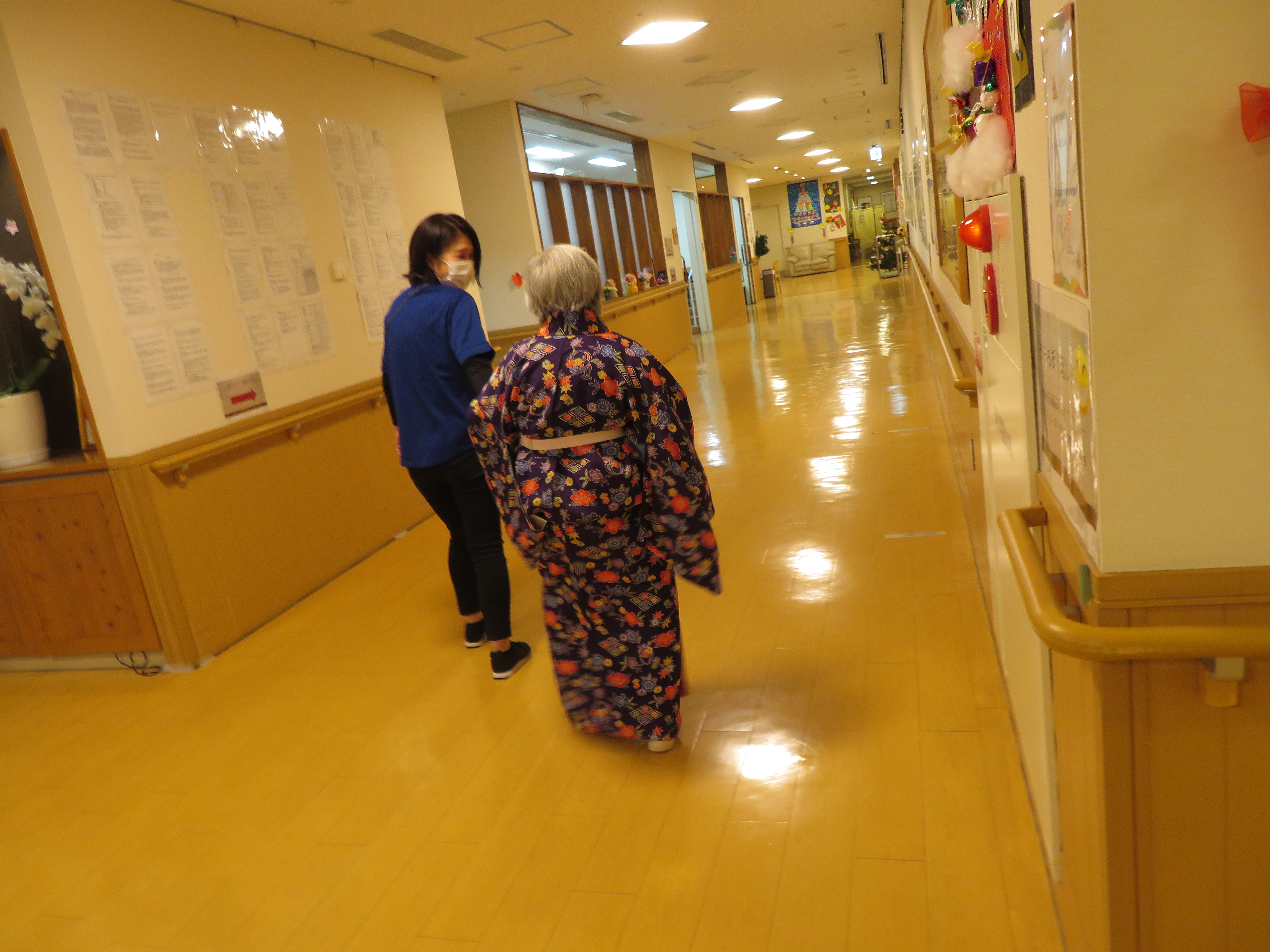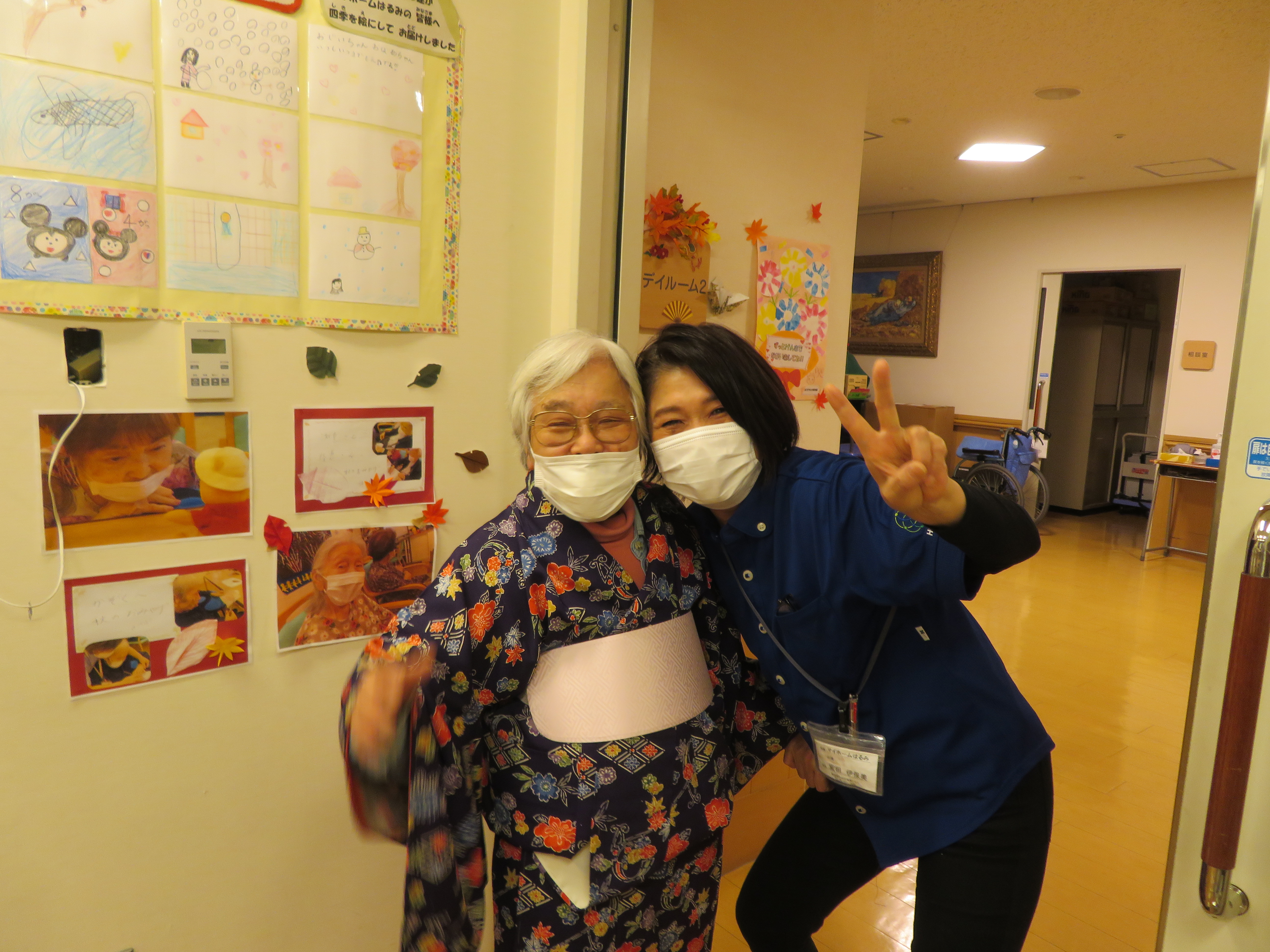 モデルになってくれた利用者様は着物が大好きだそうで、とっても喜んで下さいました。