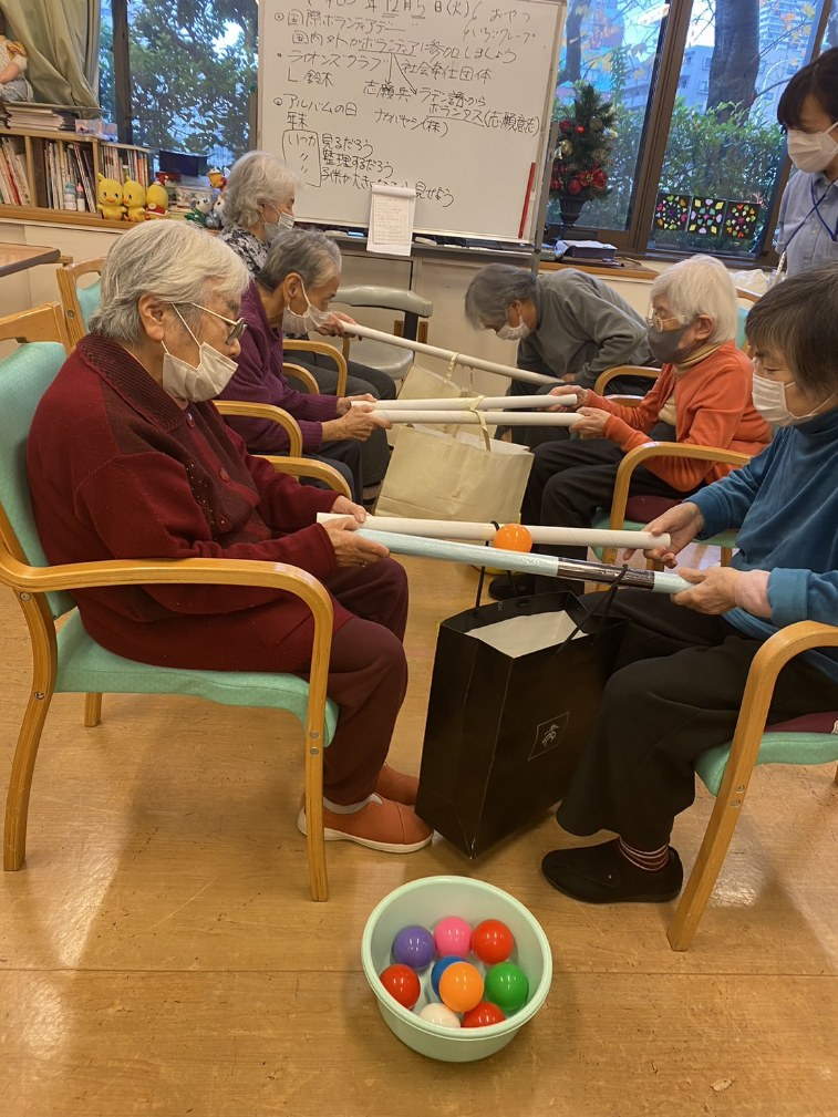 2023.12.08 活動報告 【はるみ認知デイ】橋渡し&袋落としゲーム Tweet シェアする 隣の方と協力して真ん中の紙袋に球を落とします! お二人で協力してタイミングを合わせてくださいー! チーム戦が盛り上がった日でした♪ 角谷 前の記事 2023.12.08 活動報告 【はるみ認知デイ】歩行訓練にもなるレク 次の記事 2023.12.08 活動報告 【はるみ認知デイ】クリスマスカード作り 一覧へ戻る