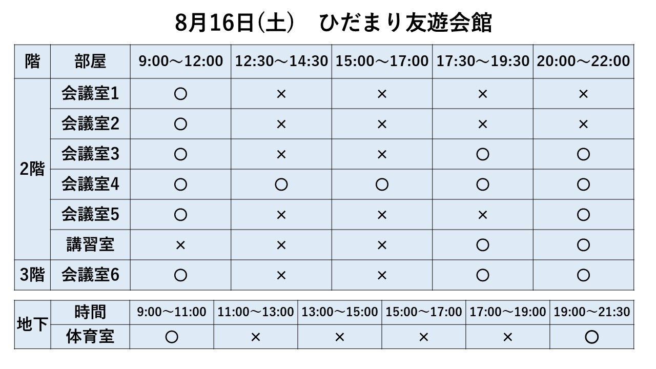 2025.06.25 お知らせ 8/10~8/16利用状況 Tweet シェアする 8/10~8/16までの利用状況です。※8/5現在 ※最新情報はお電話でお問い合わせください。 ひだまり友遊会館 寺﨑 前の記事 2025.06.25 お知らせ 8/17~8/23利用状況 次の記事 2025.06.25 お知らせ 8/1~8/9利用状況 一覧へ戻る