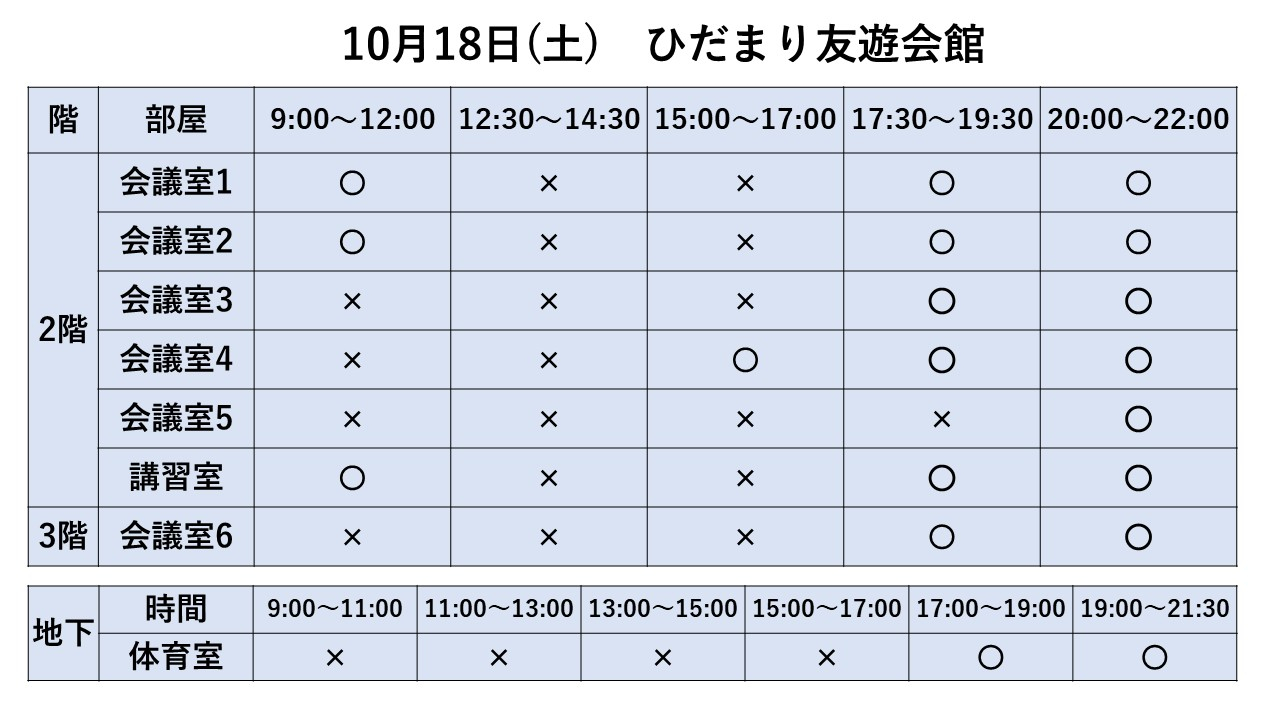 2025.08.31 お知らせ 10/12~10/18利用状況 Tweet シェアする 10/12~10/18までの利用状況です。※10/16現在 ※最新情報はお電話でお問い合わせください。 ひだまり友遊会館 寺﨑 前の記事 2025.08.31 お知らせ 10/19~10/25利用状況 次の記事 2025.08.31 お知らせ 10/5~10/11利用状況 一覧へ戻る