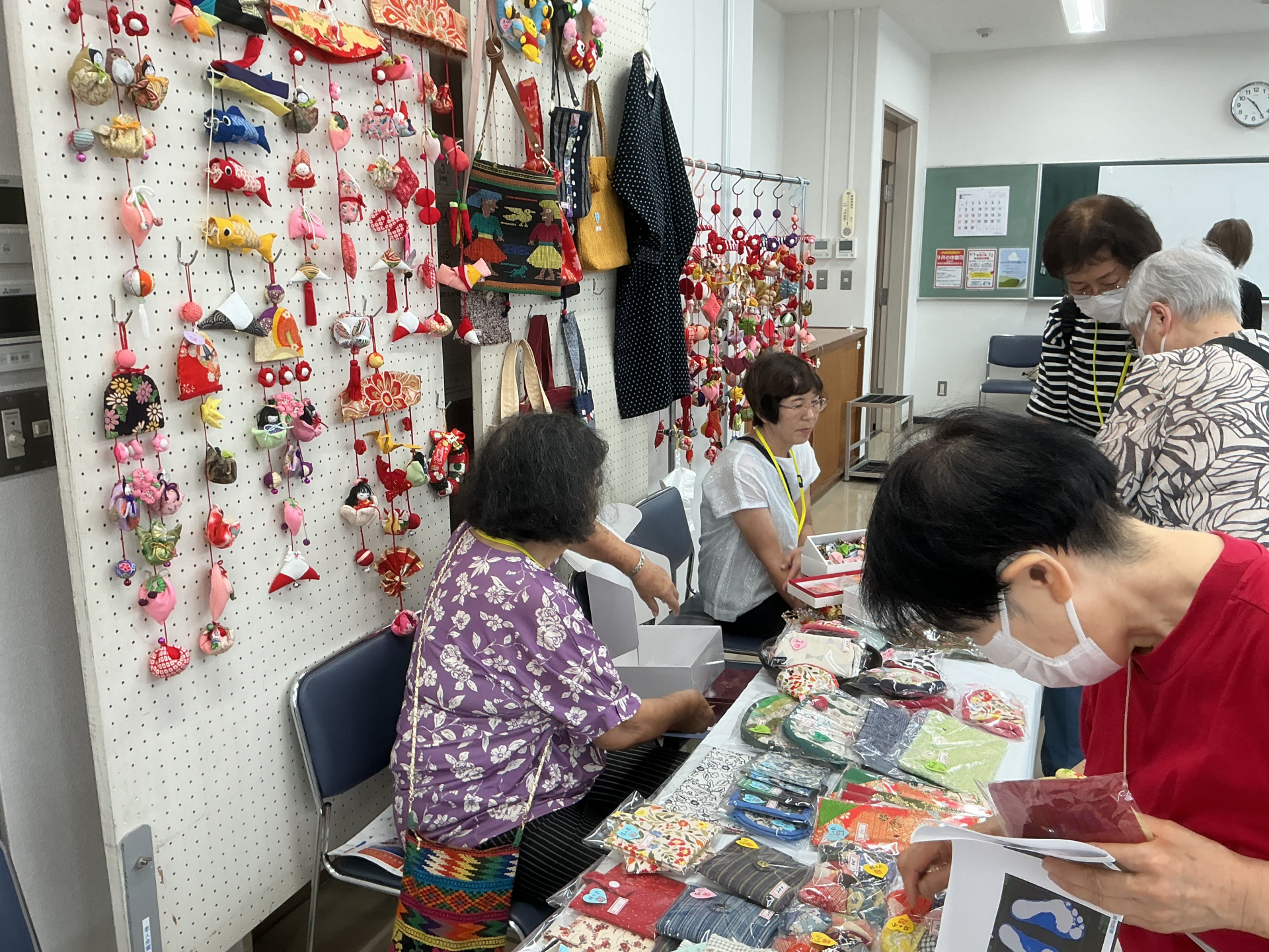 吊るし雛がかわいいですね!絹の会さんの手作りの小物の販売も毎年とても人気です。