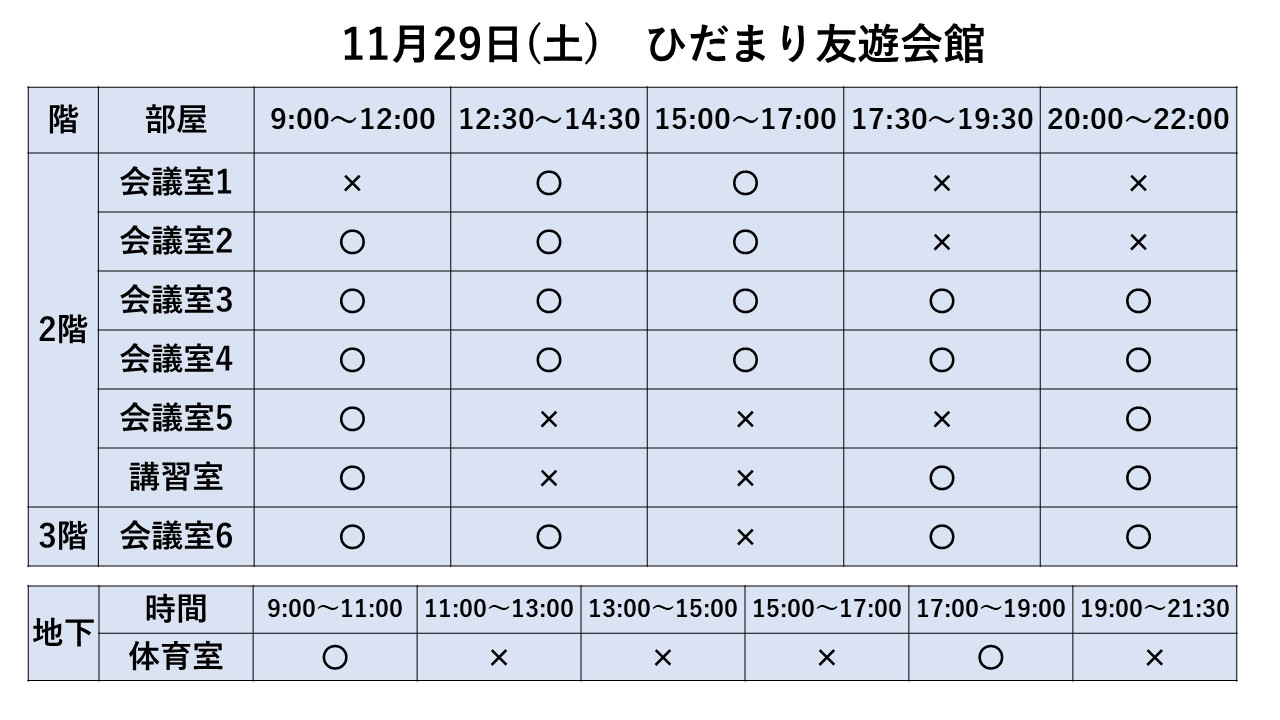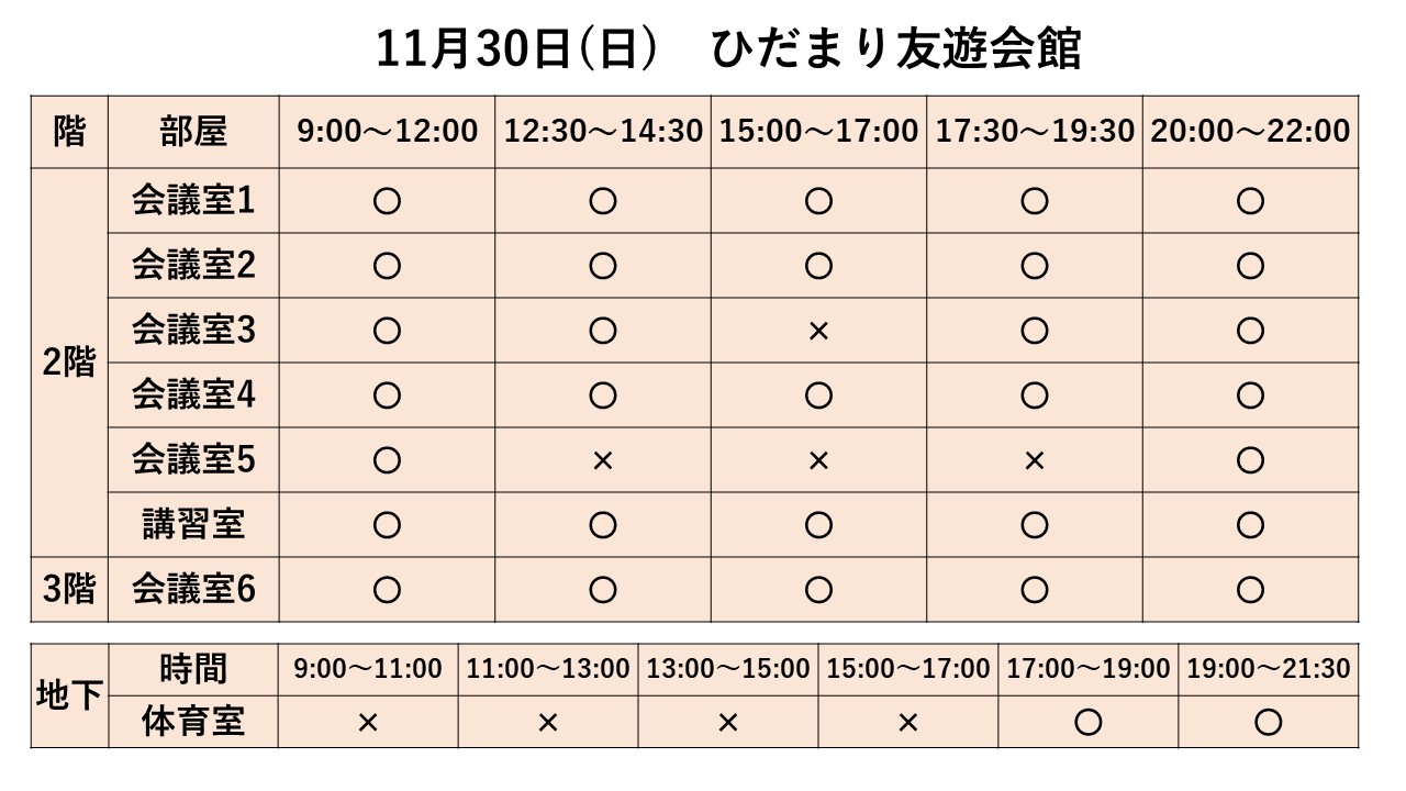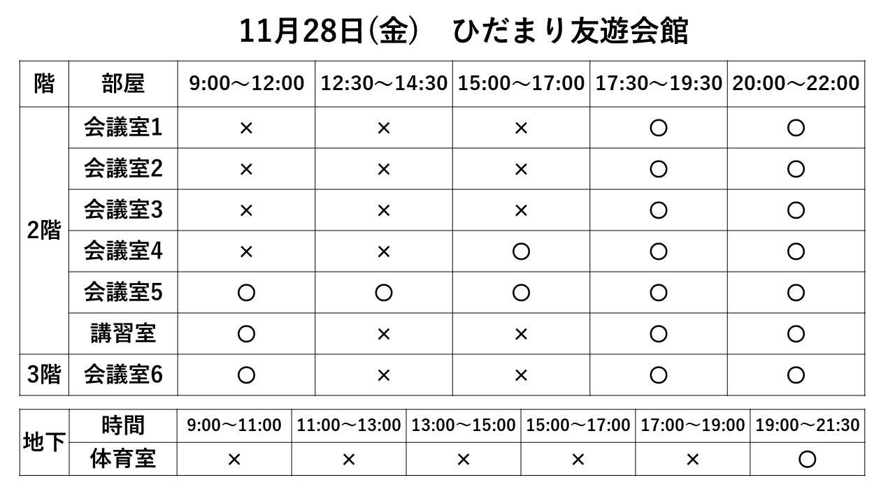 2025.10.01 お知らせ 11/23~11/30 利用状況 Tweet シェアする 11/23~11/30までの利用状況です。※11/13現在 ※最新情報はお電話でお問い合わせください。 ひだまり友遊会館 cs 前の記事 2025.10.03 お知らせ ひだまり健康体操 次の記事 2025.10.01 お知らせ 11/16~11/22 利用状況 一覧へ戻る