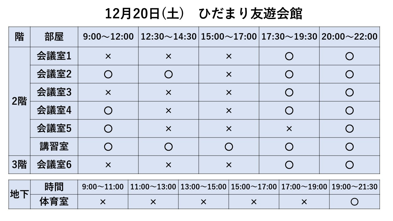 2025.10.31 お知らせ 12/14~12/20利用状況 Tweet シェアする 12/14~12/20までの利用状況です。 ※11/1現在 ※最新情報はお電話でお問合せ下さい ひだまり友遊会館 前の記事 2025.10.31 お知らせ 12/21~12/27利用状況 次の記事 2025.10.31 お知らせ 12/7~12/13利用状況 一覧へ戻る