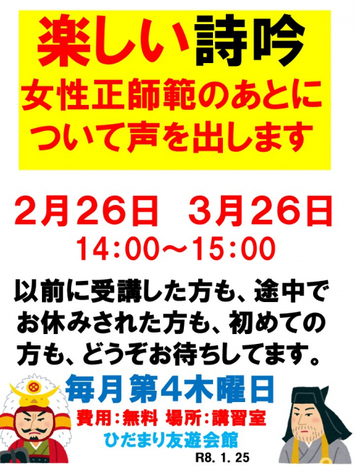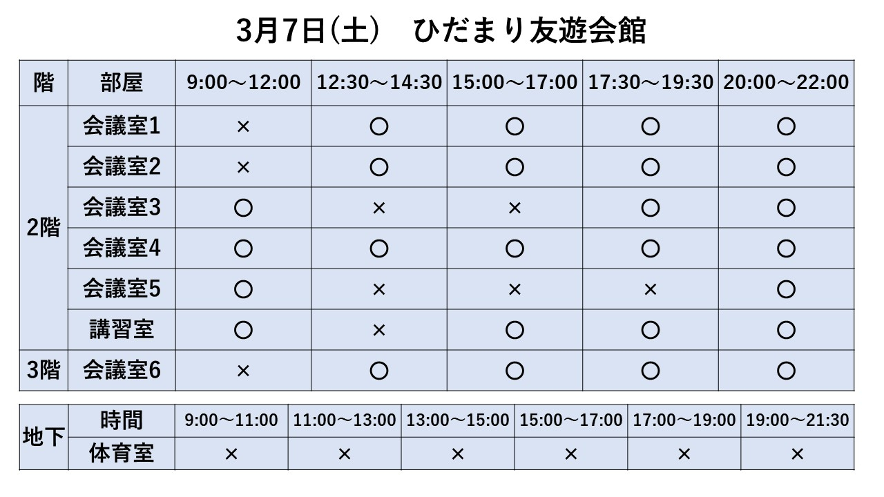 2026.02.01 お知らせ 3/1~3/7利用状況 Tweet シェアする 3/1~3/7までの利用状況です ※2/2現在 ※最新情報はお電話でお問合せ下さい ひだまり友遊会館 寺﨑 前の記事 2026.02.01 お知らせ 3/8~3/14利用状況 次の記事 2026.01.31 お知らせ 詩吟教室 一覧へ戻る
