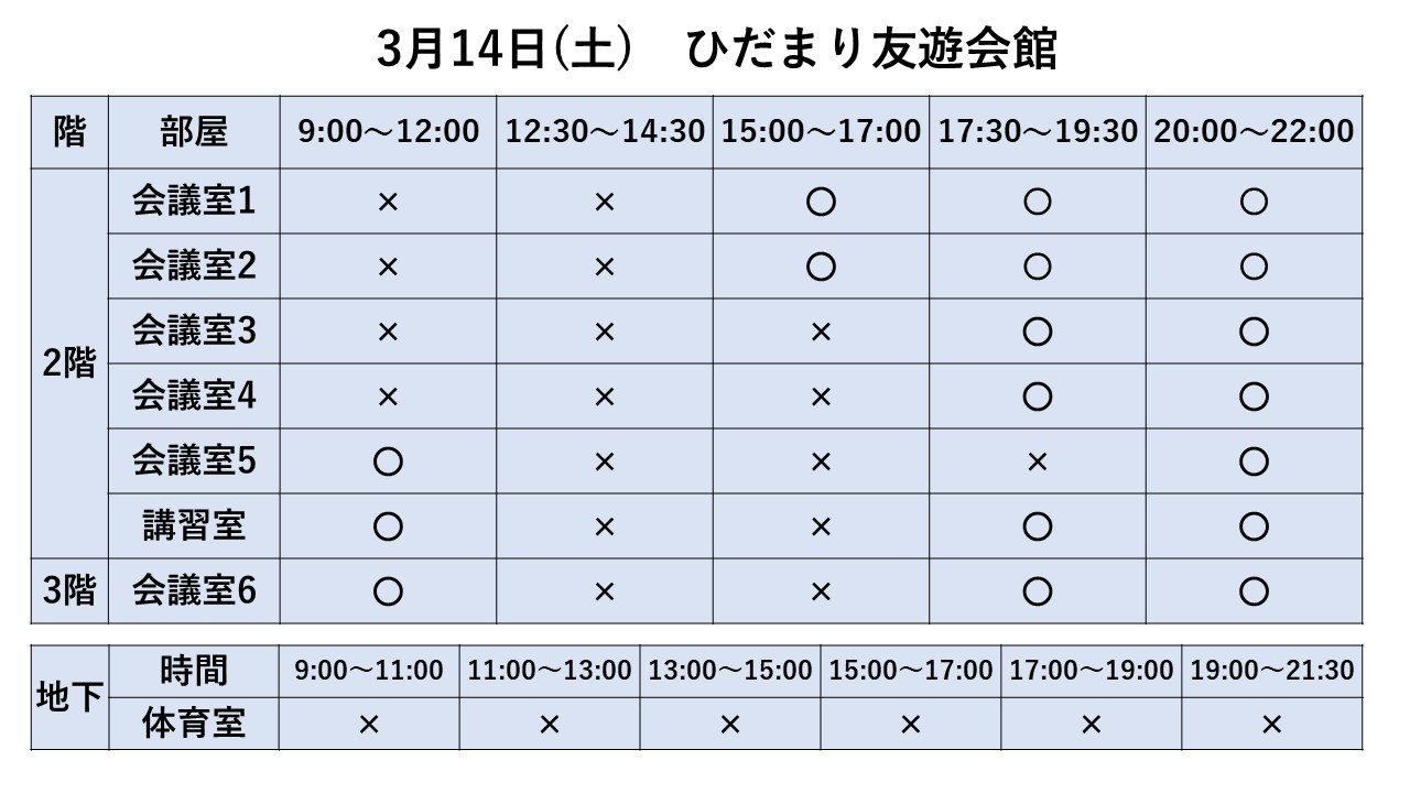 2026.02.01 お知らせ 3/8~3/14利用状況 Tweet シェアする 3/8~3/14までの利用状況です ※2/1現在 ※最新情報はお電話でお問合せ下さい ひだまり友遊会館 寺﨑 前の記事 2026.02.01 お知らせ 3/15~3/21利用状況 次の記事 2026.02.01 お知らせ 3/1~3/7利用状況 一覧へ戻る