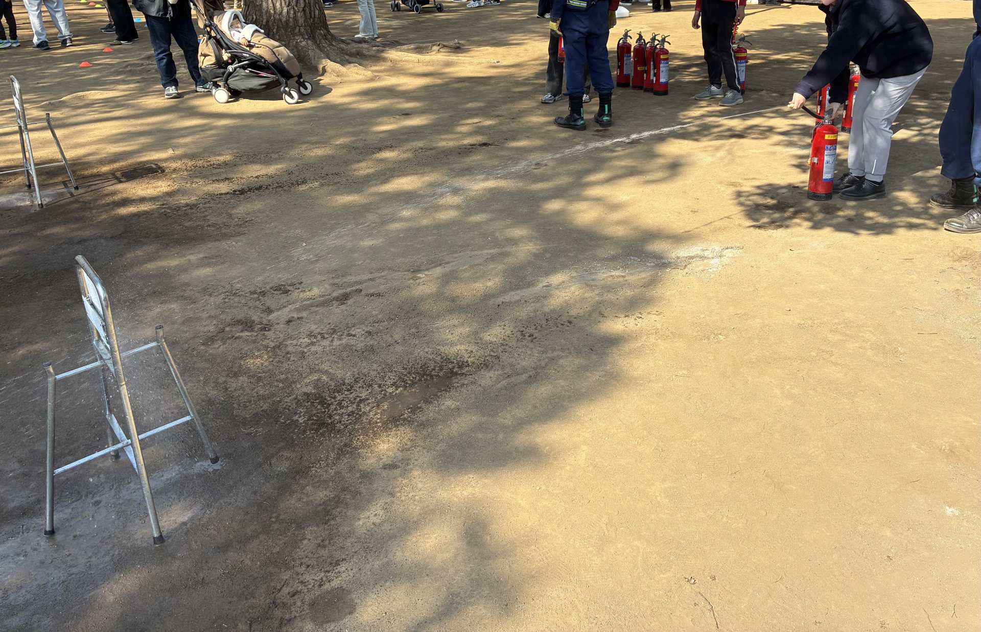 食事を楽しんだ後は、防災コーナーにて「初期消火訓練」を行いました!