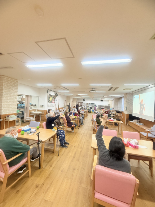 2026.01.09 ゲーム(風船バレー) 活動報告 2026.01.08 塗り絵 活動報告 2026.01.07 初詣 活動報告 2026.01.07 ゲーム(テーブルのせ) 活動報告 2026.01.06 ゲーム(ミニサッカー) 活動報告 2025.12.26 ゲーム(ボール飛ばし) 活動報告 2025.12.25 クリスマス会 活動報告 2025.12.22 タンゴショー 活動報告 2025.12.19 選択プログラム 活動報告 2025.12.17 ダンス体操 活動報告 2025.12.17 ヘアカット 活動報告 2025.12.15 クリスマスツリーの準備 活動報告 2025.12.15 ネイルサロン 活動報告 2025.12.13 ゲーム(傘雨) 活動報告 2025.12.10 おやつ作り(フルーチェを作り) 活動報告 1 2 3 4 … 34
