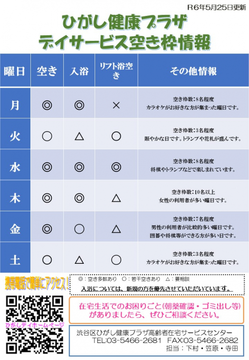 2024.05.25 お知らせ デイニュース5月号 Tweet シェアする デイニュース5月号を公開いたします。 笠原 前の記事 2024.05.26 お知らせ 空き状況の公開 次の記事 2024.05.25 お知らせ 就業促進(介護職募集)事業のお知らせ 一覧へ戻る