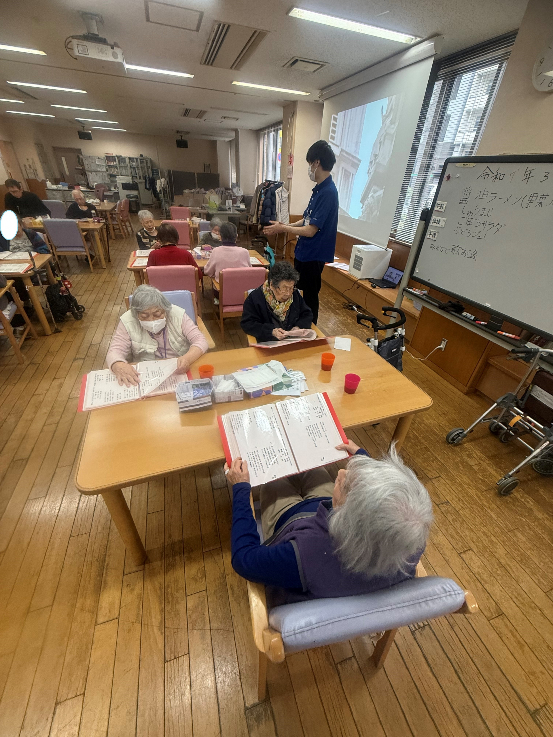 2025.03.06 活動報告 みんなで歌おう会 Tweet シェアする 今日は、みんなで歌おう会に参加され、昔懐かしい童謡をみんなで楽しく歌いました。 ひがしデイのゴーティモ 前の記事 2025.03.07 活動報告 パターゴルフ 次の記事 2025.03.03 活動報告 ふぉーゆー体操 一覧へ戻る
