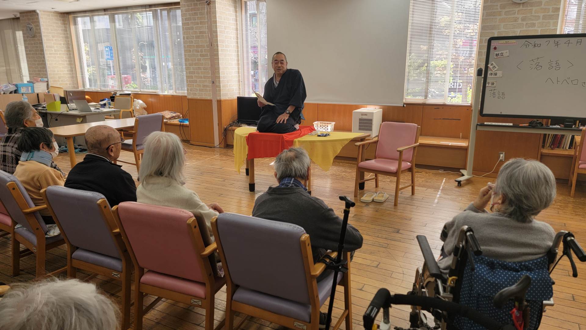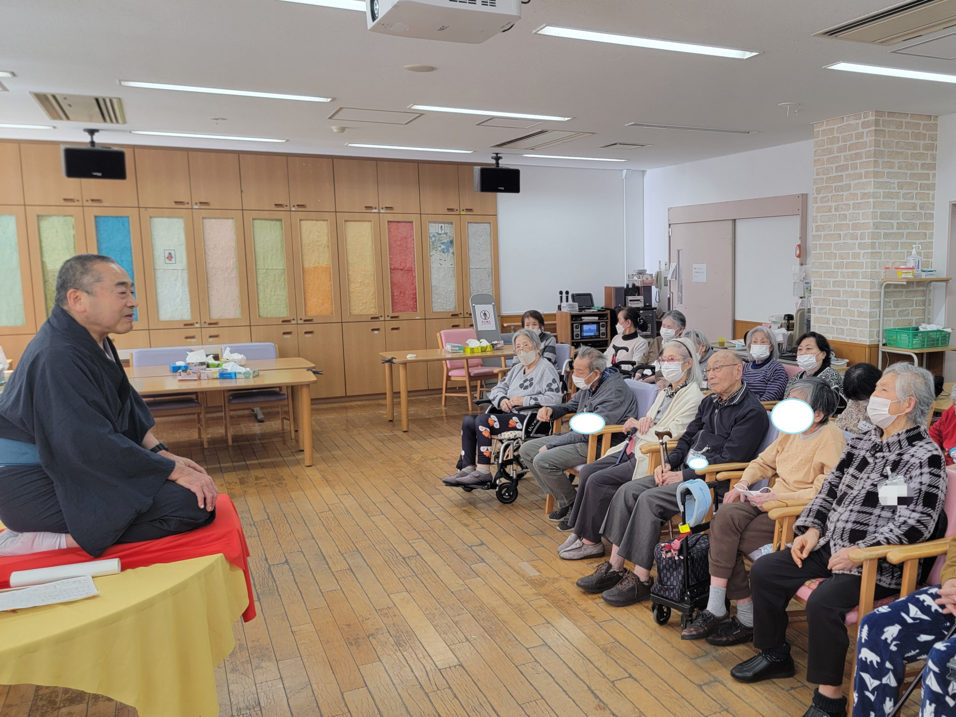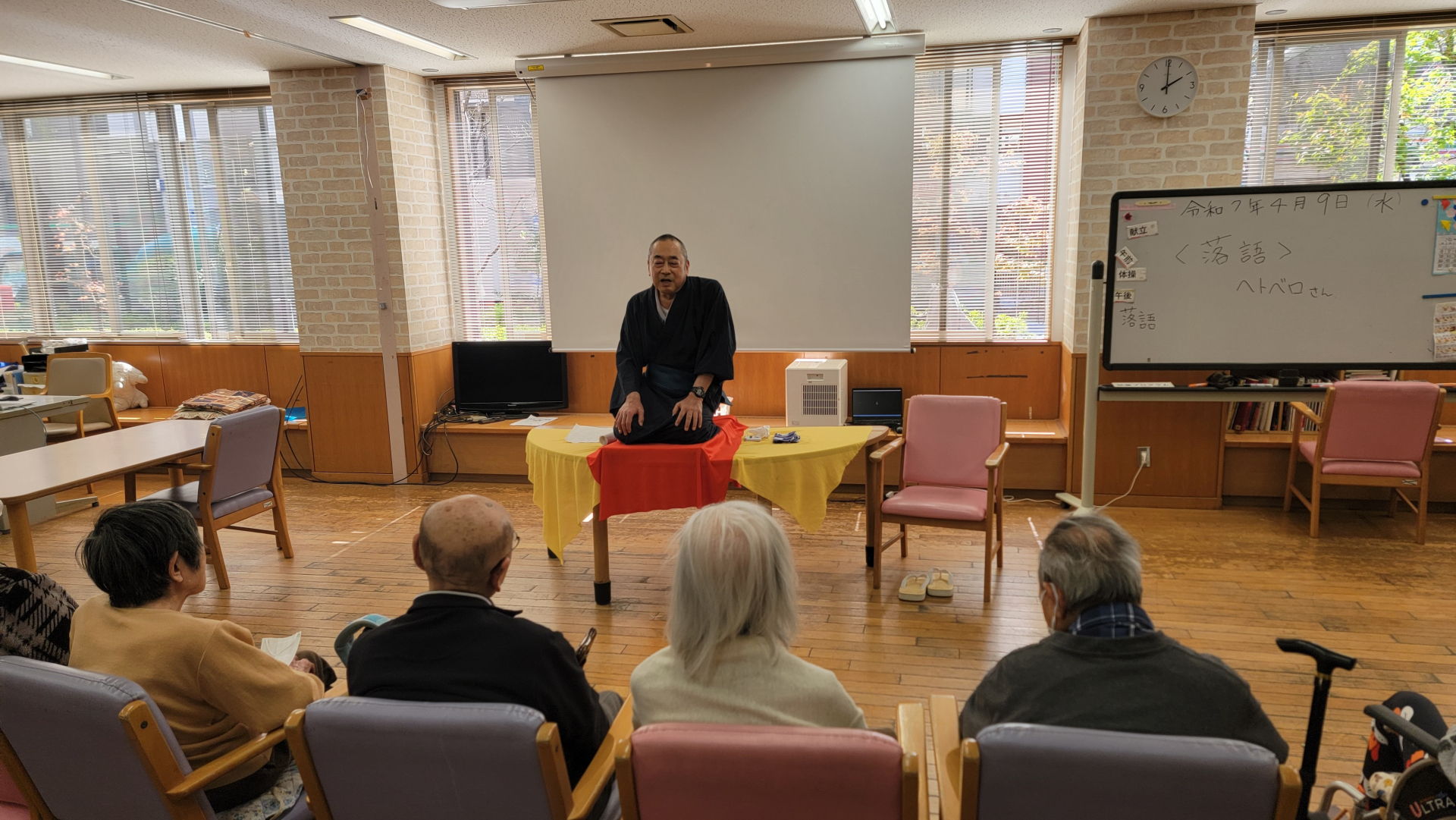 2025.04.09 活動報告 落語 Tweet シェアする 今日はボランティアの方が来て下さり、落語を披露して下さっております。「猫の茶碗」と「目薬」という落語を披露して下さっております。 ひがしデイのゴーティモ 前の記事 2025.04.10 活動報告 南米音楽 演奏会 次の記事 2025.04.08 活動報告 棒体操 一覧へ戻る