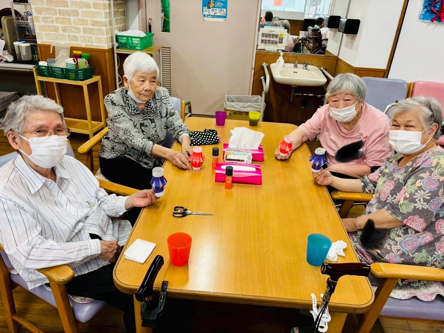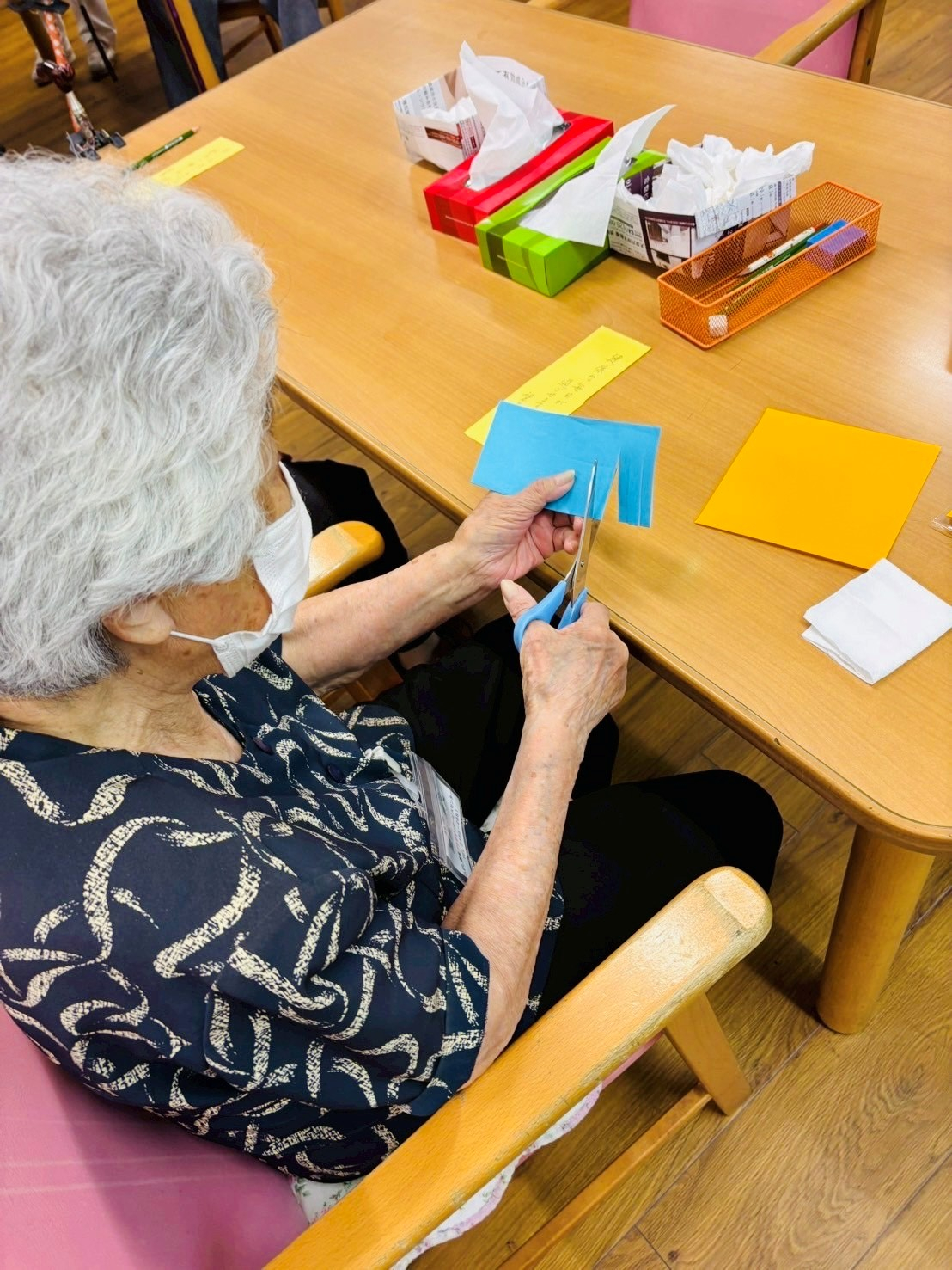 2025.07.05 活動報告 七夕飾り完成 Tweet シェアする 今日「七夕飾り作り」最終日でした。出来上がった飾りや短冊を笹にみんなで付けました。 ひがしデイのゴーティモ 前の記事 2025.07.07 活動報告 落語 次の記事 2025.07.05 活動報告 お誕生日会 一覧へ戻る