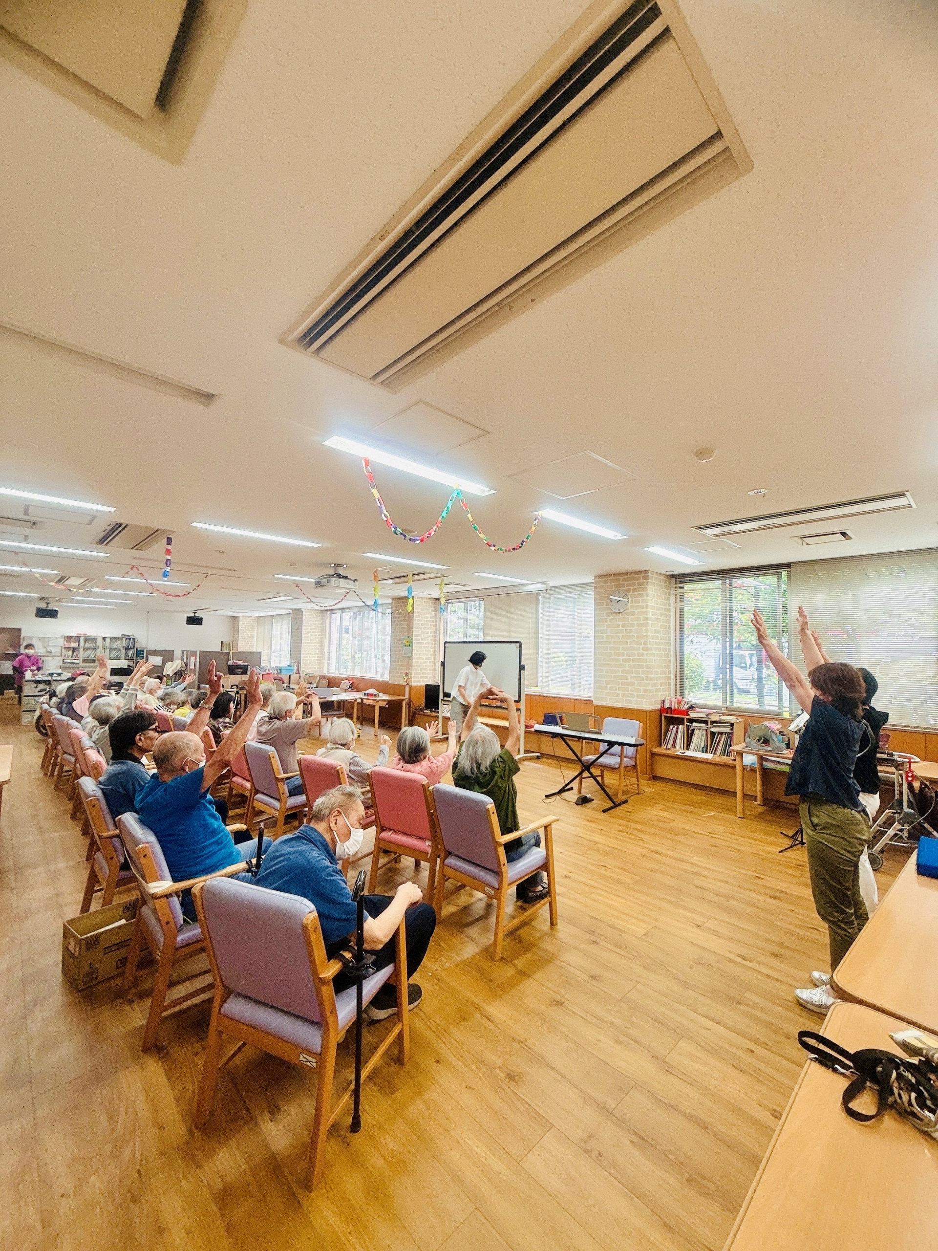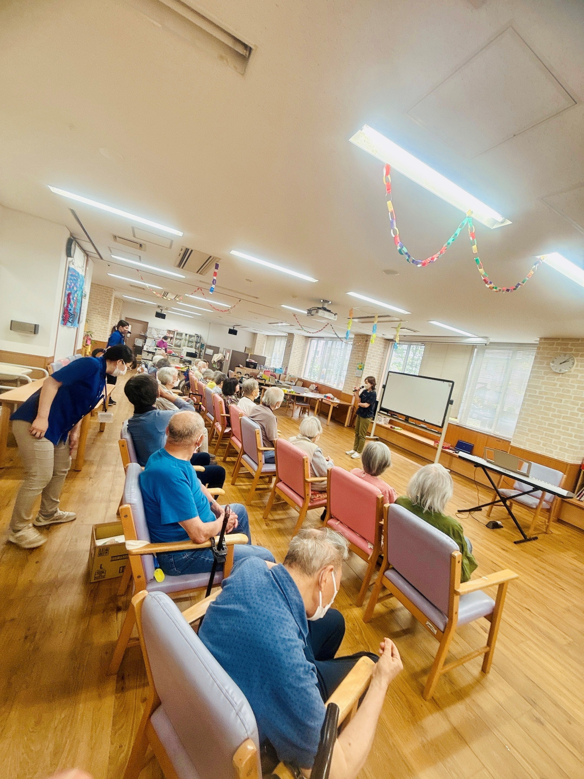 2025.07.12 活動報告 十音の会 Tweet シェアする 本日は十音(とおん)の会のボランティアの方が来て下さっております。初めに発声練習を行いました。その後、「ハナミズキ」を伴奏つきで皆さんで歌いました。 ひがしデイのゴーティモ 前の記事 2025.07.14 活動報告 輪投げゲーム 次の記事 2025.07.11 活動報告 ゲーム(ミニサッカー) 一覧へ戻る