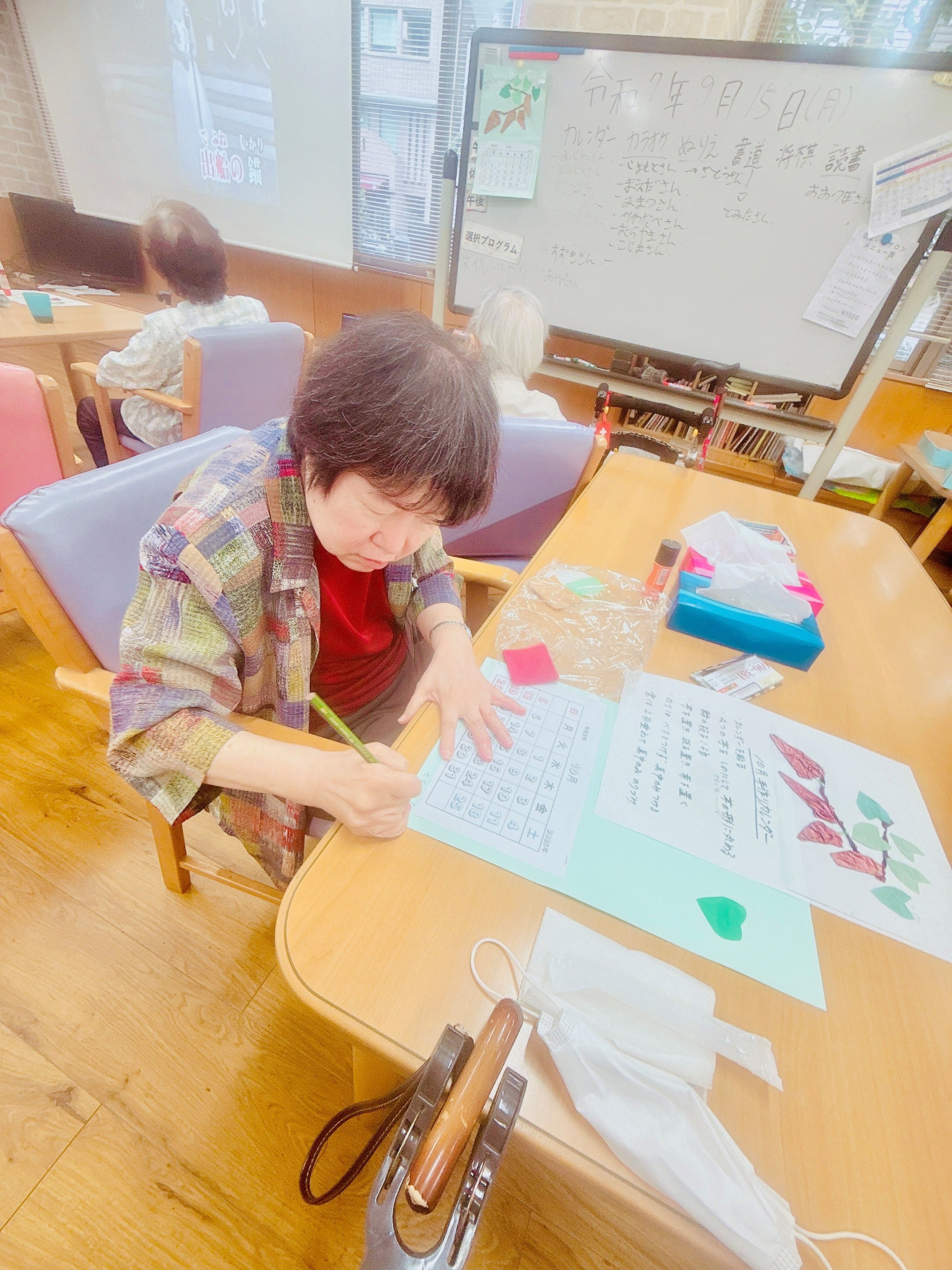 2025.09.15 活動報告 選択プログラム Tweet シェアする 今日は「選択プログラム」で、10月のカレンダー、カラオケ、塗り絵、将棋、書道、読書の中からお好きな活動を選んで取り組んでいただきました。 ひがしデイのゴーテイモ 前の記事 2025.09.16 活動報告 ダンス体操 次の記事 2025.09.15 活動報告 ネイルサロン 一覧へ戻る