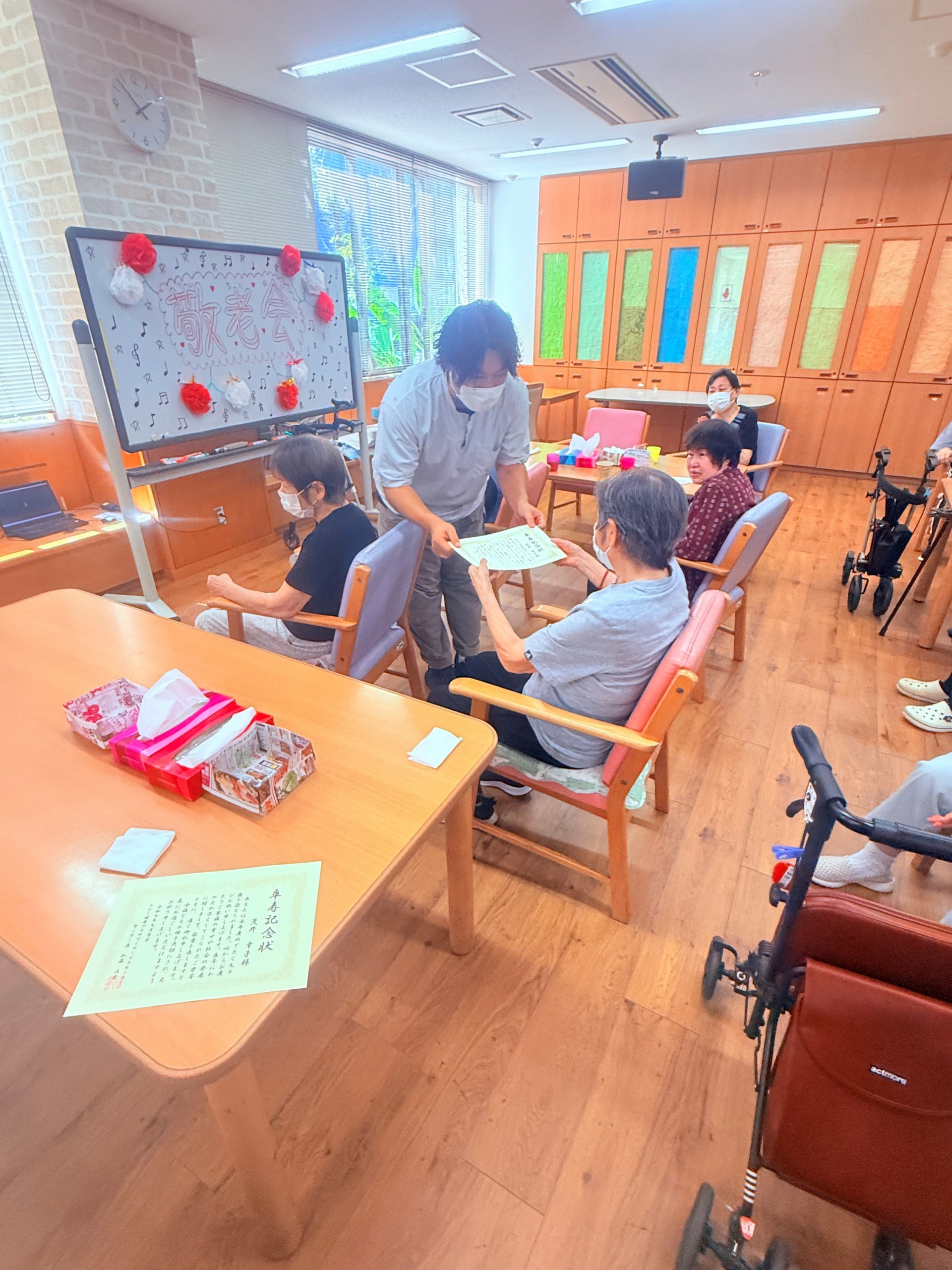 2025.09.17 活動報告 敬老会 Tweet シェアする 今日はひがしデイの敬老会を行いました。卒寿、米寿の方々に賞状をお渡しし、お祝いいたしました^~^皆様が笑顔が見られました。 ひがしデイのゴーティモ 前の記事 2025.09.17 活動報告 フラワーアレンジメント 次の記事 2025.09.17 活動報告 ボランティアクイズ 一覧へ戻る