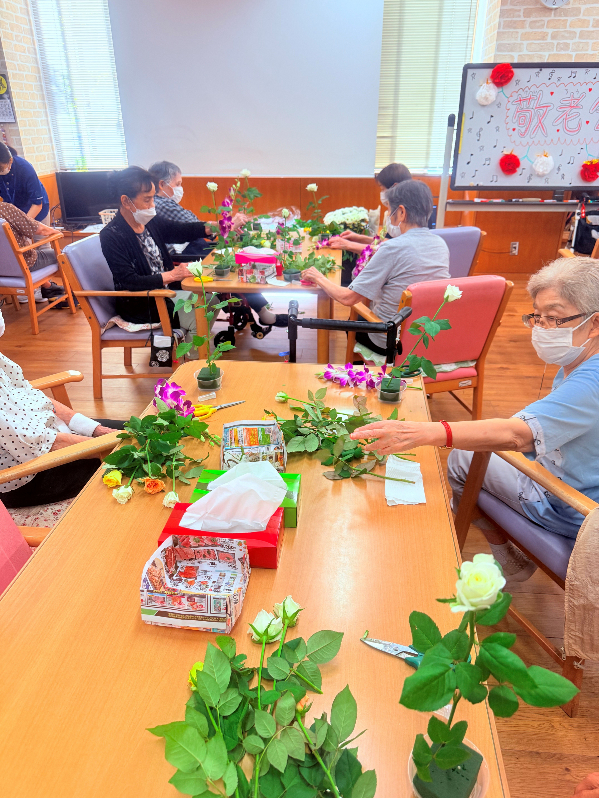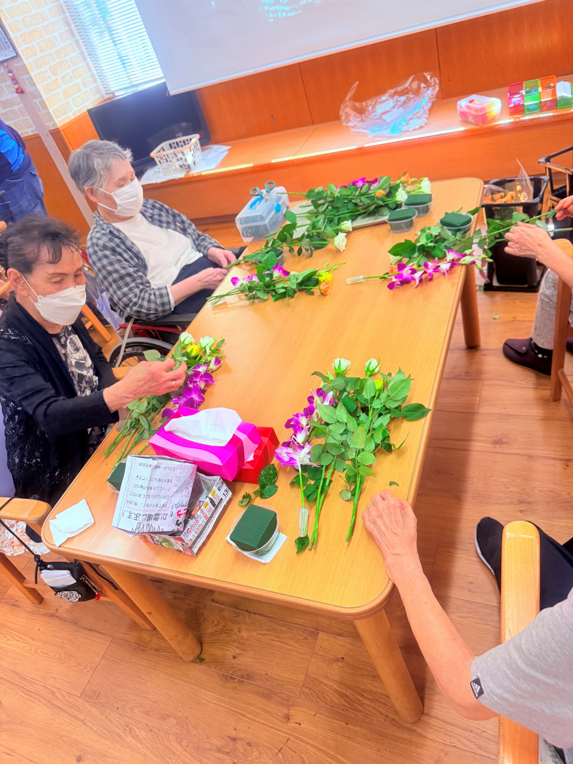 2025.09.17 活動報告 フラワーアレンジメント Tweet シェアする 本日は外部から先生をお招きし、フラワーアレンジメントにご参加いただきました。皆様が上手に出来ました。綺麗なお花が見られました。 ひがしデイのゴーティモ 前の記事 2025.09.18 活動報告 おやつ作り(スイートポテト) 次の記事 2025.09.17 活動報告 敬老会 一覧へ戻る