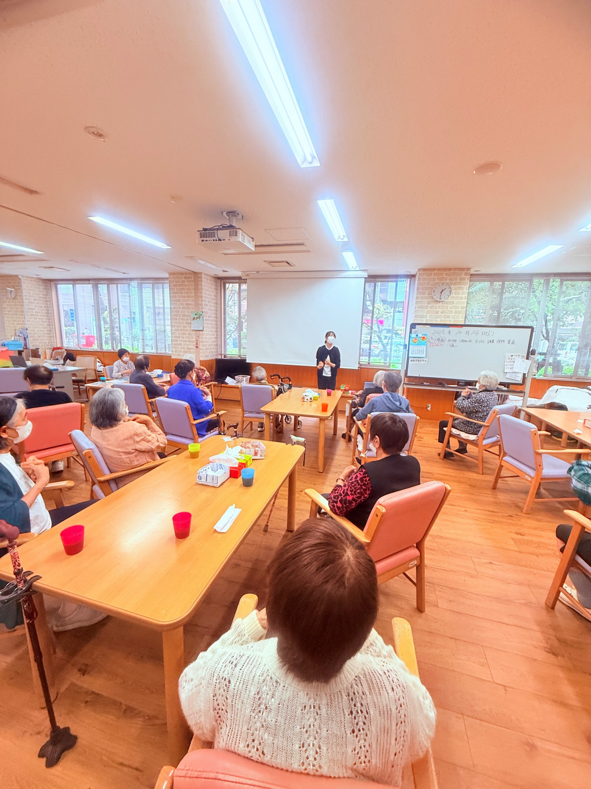 2025.10.14 活動報告 学生さんが体操を作成 Tweet シェアする 今日は学生さんがひがしデイに来所しました。学生さんとご利用者様が一緒に体操を参加しておりました。 ひがしデイのゴーティモ 前の記事 2025.10.15 活動報告 落語 次の記事 2025.10.14 活動報告 塗り絵 一覧へ戻る