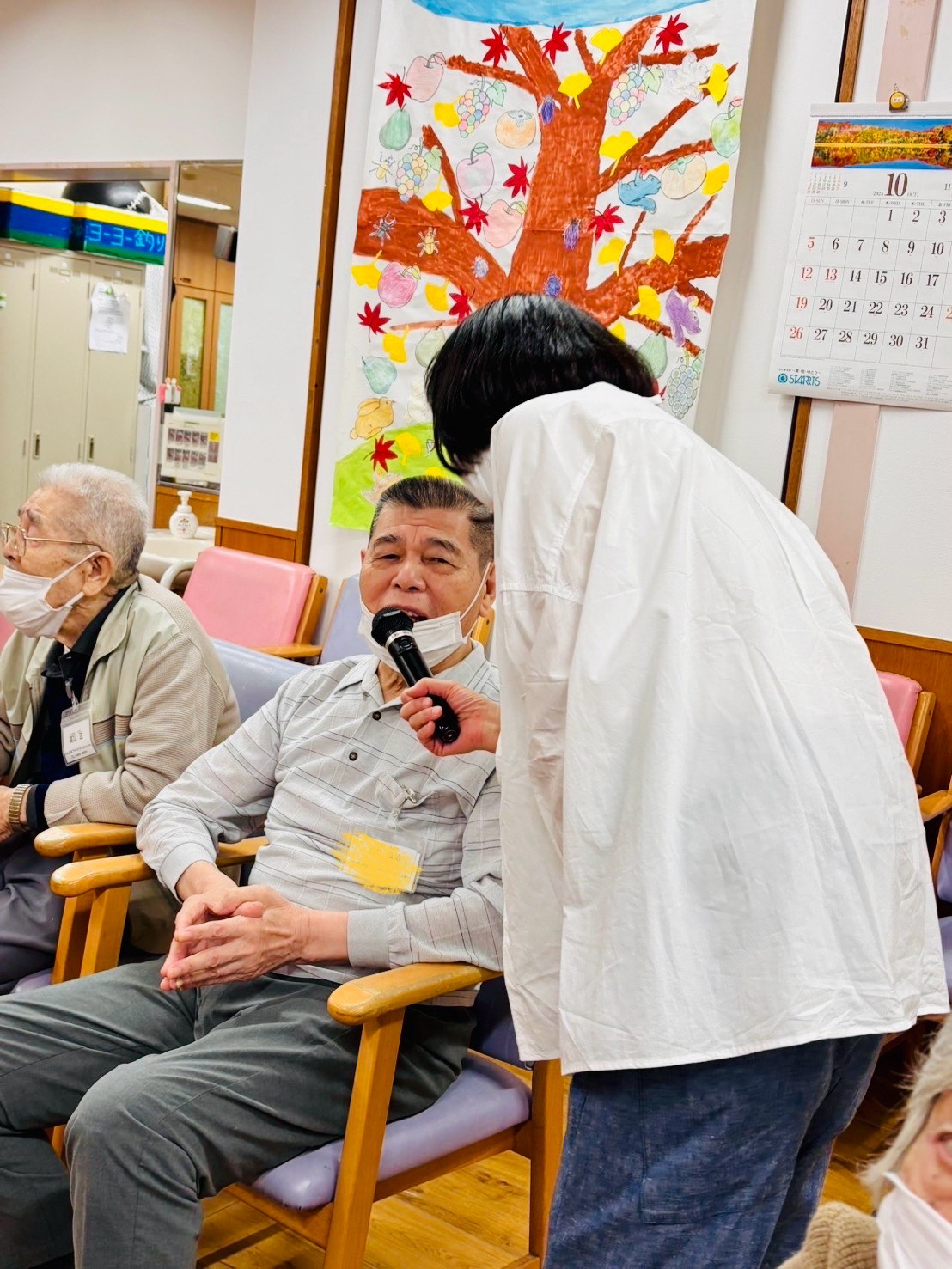 2025.10.18 活動報告 十音の会 Tweet シェアする 午後は『十音の会』の方々がいらっしゃり、サックスとピアノの演奏を聴いたり、秋の歌や元気の出る歌をたくさん歌ったりしました。大きな声を出して歌うのは、身体にとても良いです。 ひがしデイのゴーテイモ 前の記事 2025.10.20 活動報告 ネイルサロン 次の記事 2025.10.16 活動報告 選択プログラム 一覧へ戻る