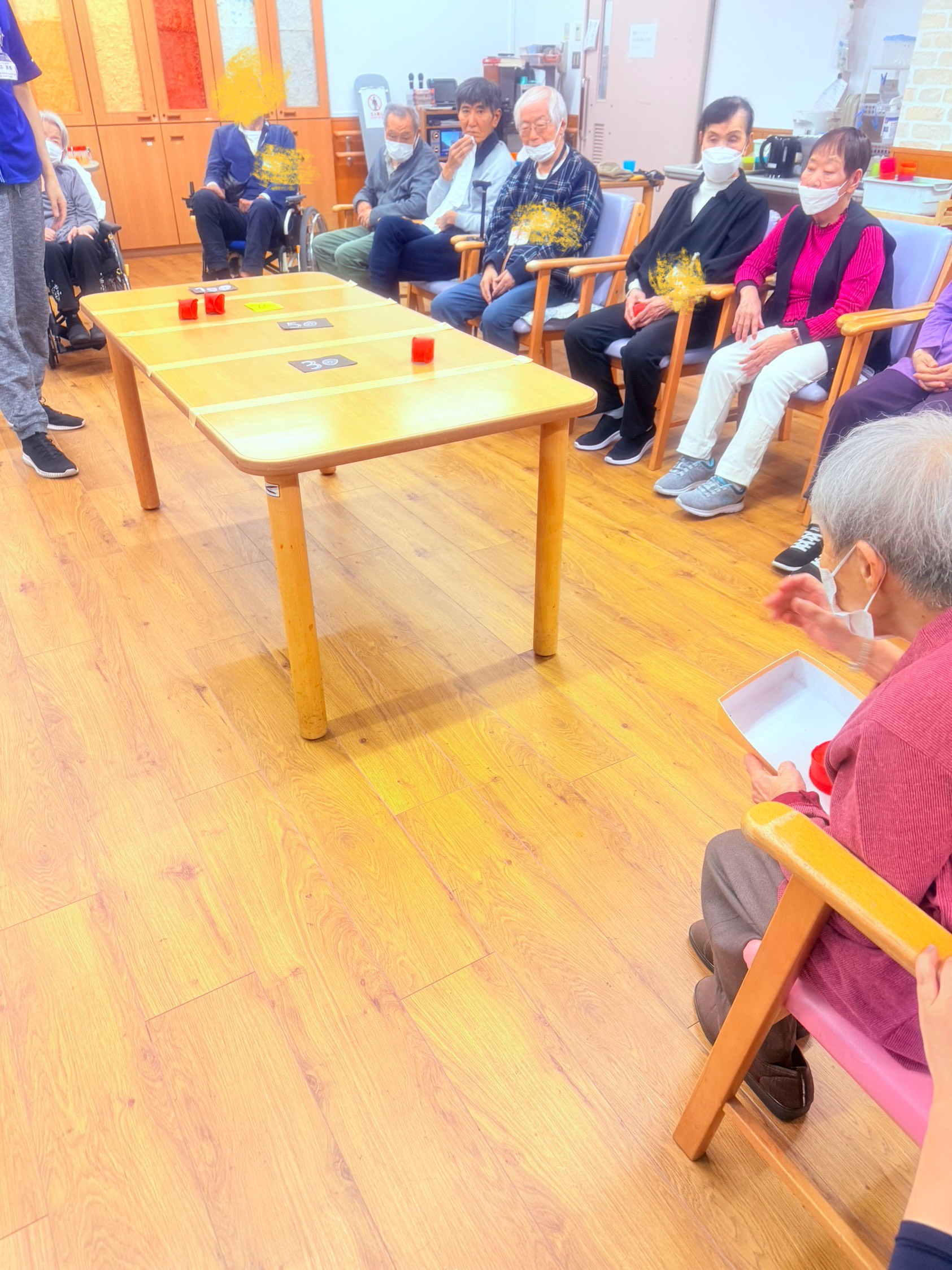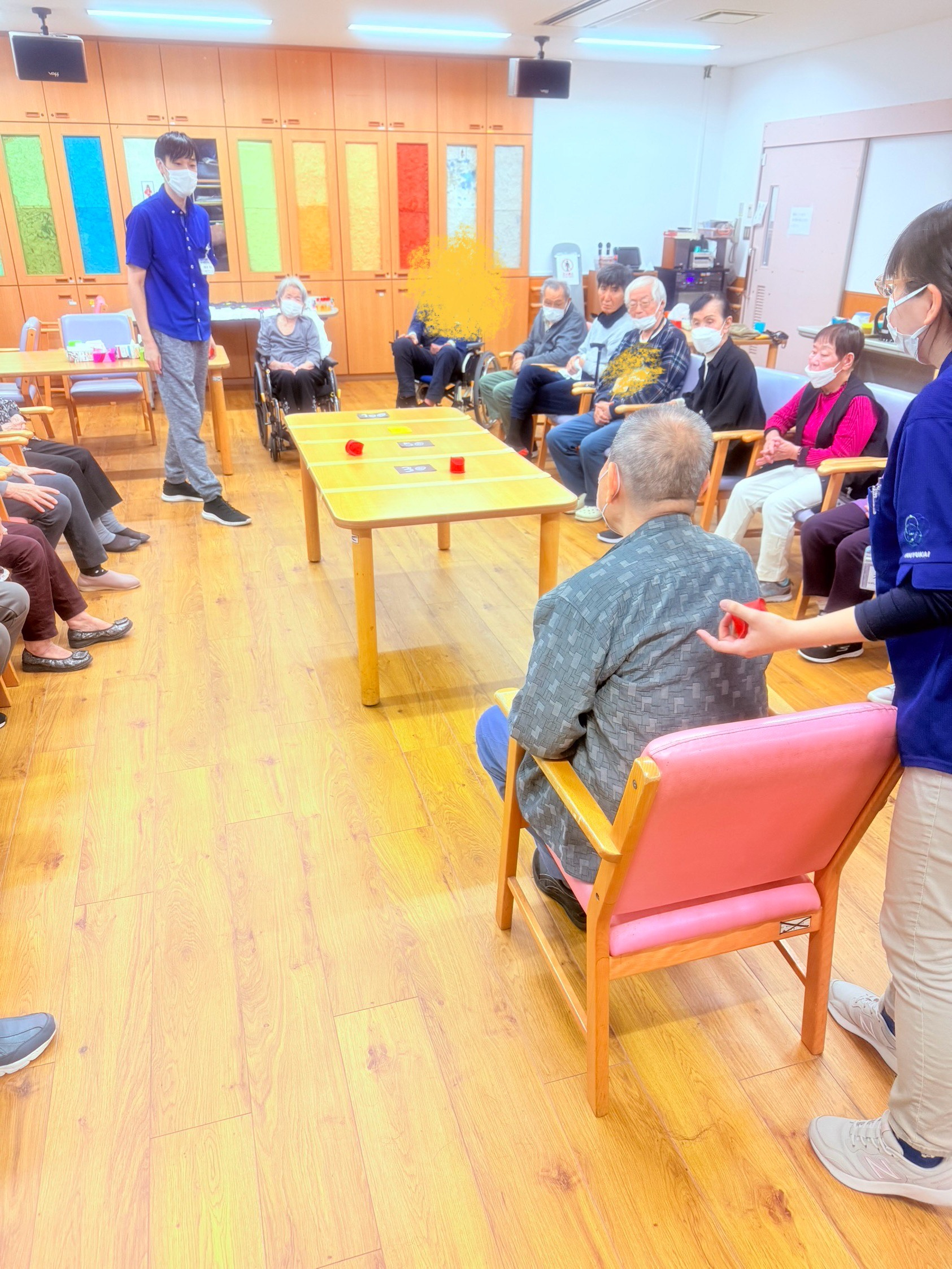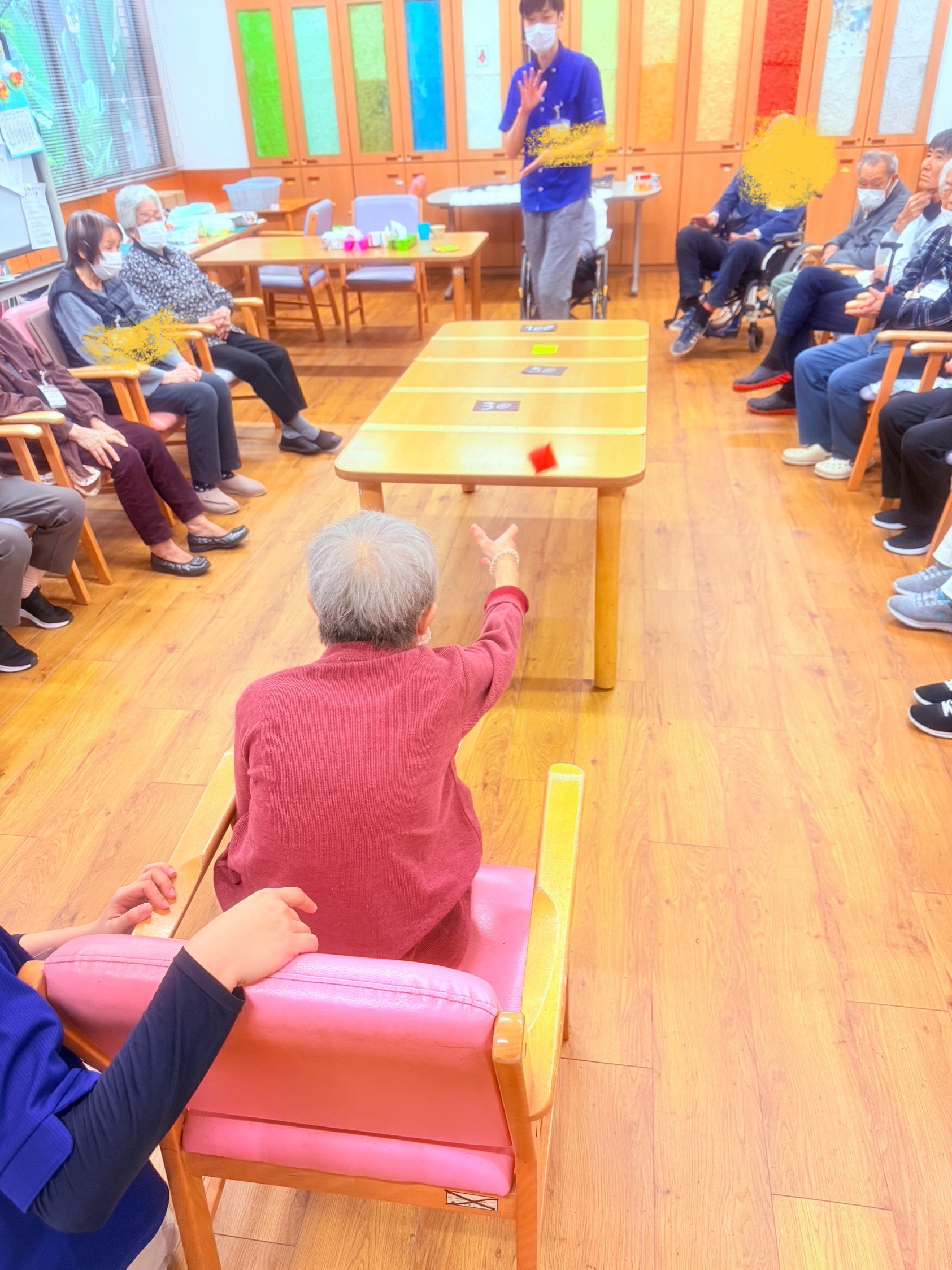 2025.10.21 活動報告 ゲーム(テーブルのせ) Tweet シェアする 今日はテーブルのせゲームを実施しました。ボールを5個投げ、合計得点が高くなるように皆さん頑張りました。 ひがしデイのゴーテイモ 前の記事 2025.10.23 活動報告 傘で玉入れゲーム 次の記事 2025.10.20 活動報告 ネイルサロン 一覧へ戻る
