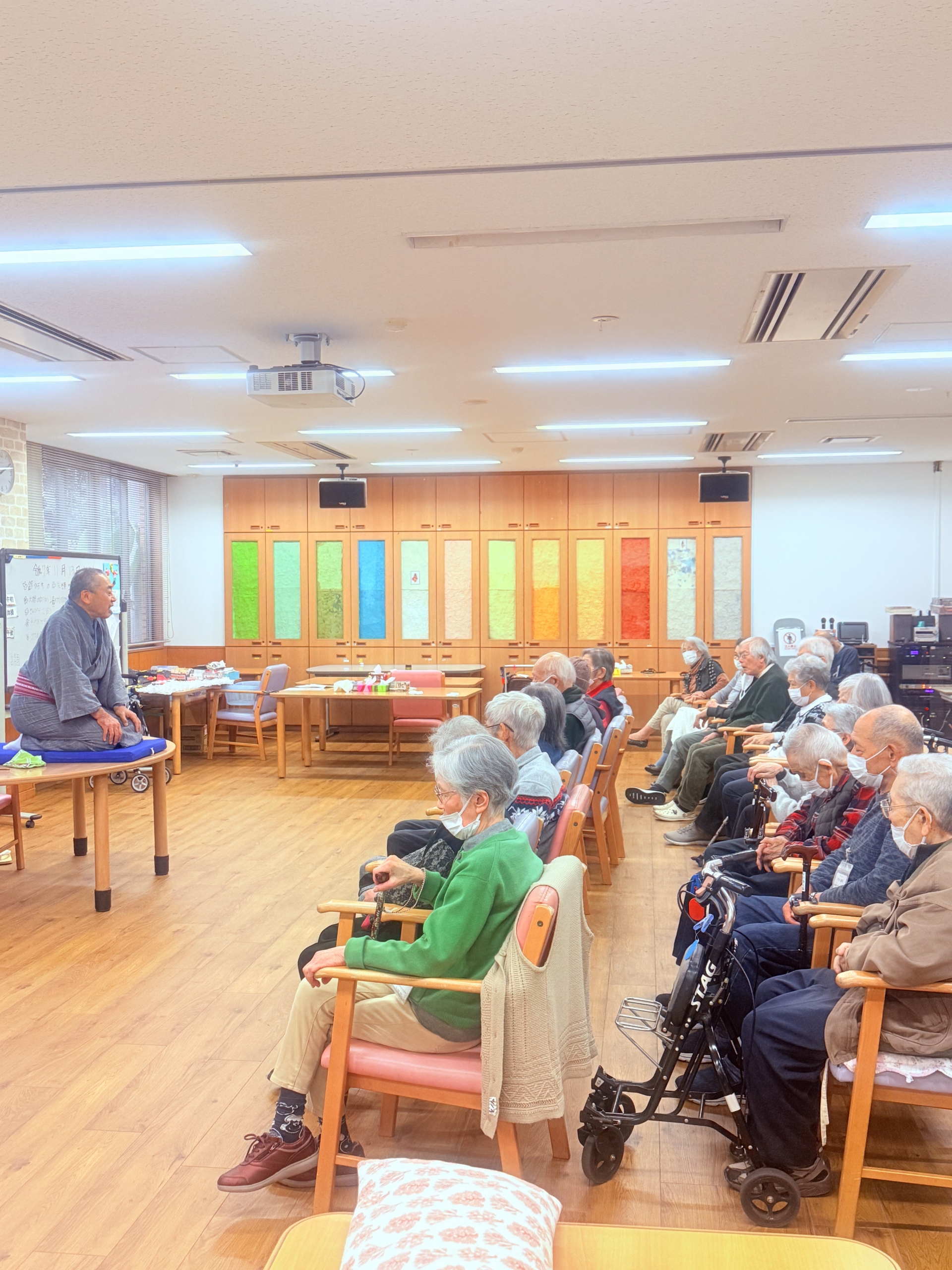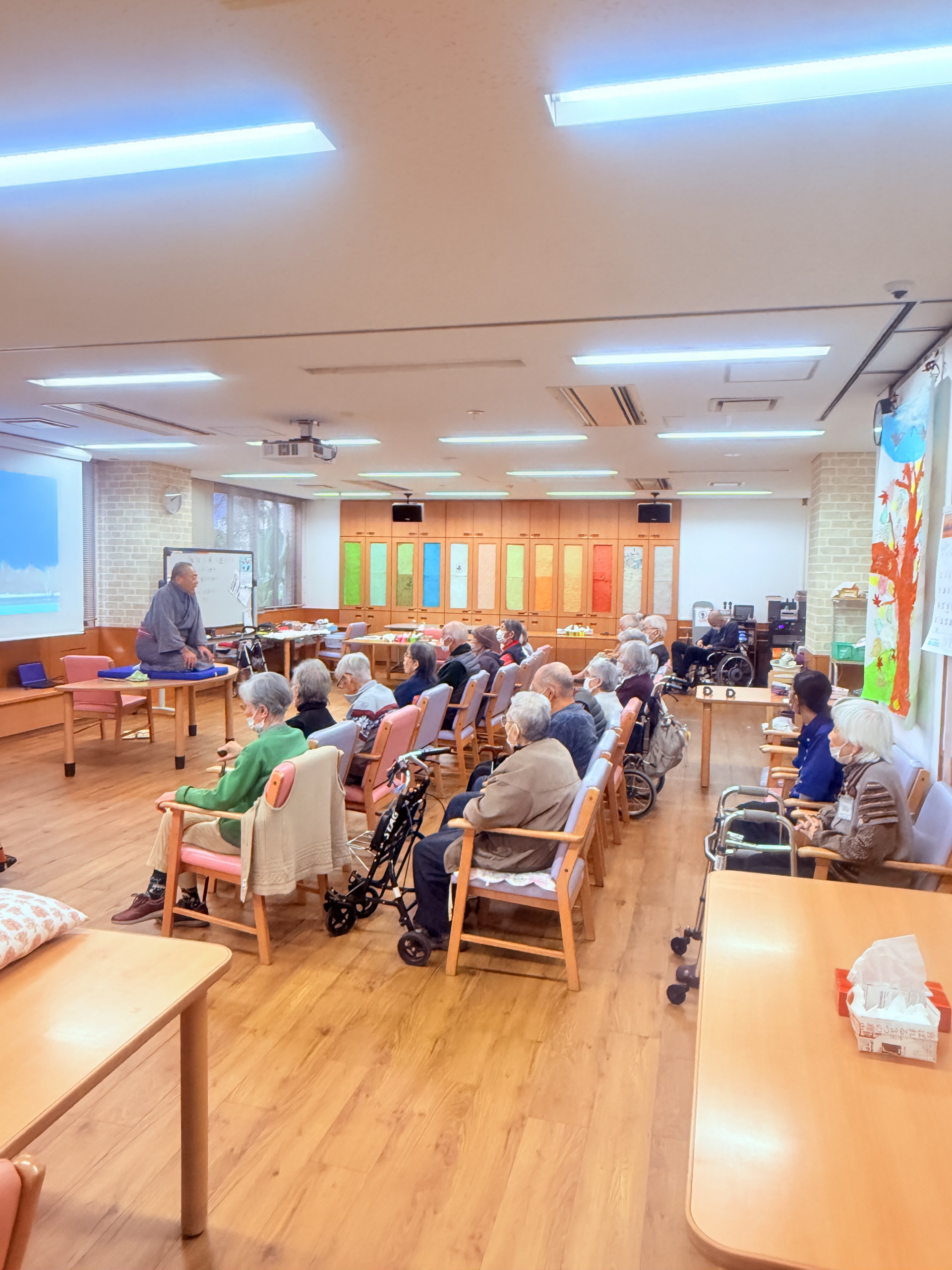 2025.11.13 活動報告 落語 Tweet シェアする 今日は、毎月恒例のヘトベロさんによる「落語」をお楽しみいただきました。いつもたっぷり1時間、楽しい話だったり、少し怖い話だったり、いろいろ聞かせてくださっていて、楽しみにしています。 ひがしデイのゴーテイモ 前の記事 2025.11.17 活動報告 ネイルイサロン 次の記事 2025.11.12 活動報告 トリオアンデス(南米音楽) 一覧へ戻る