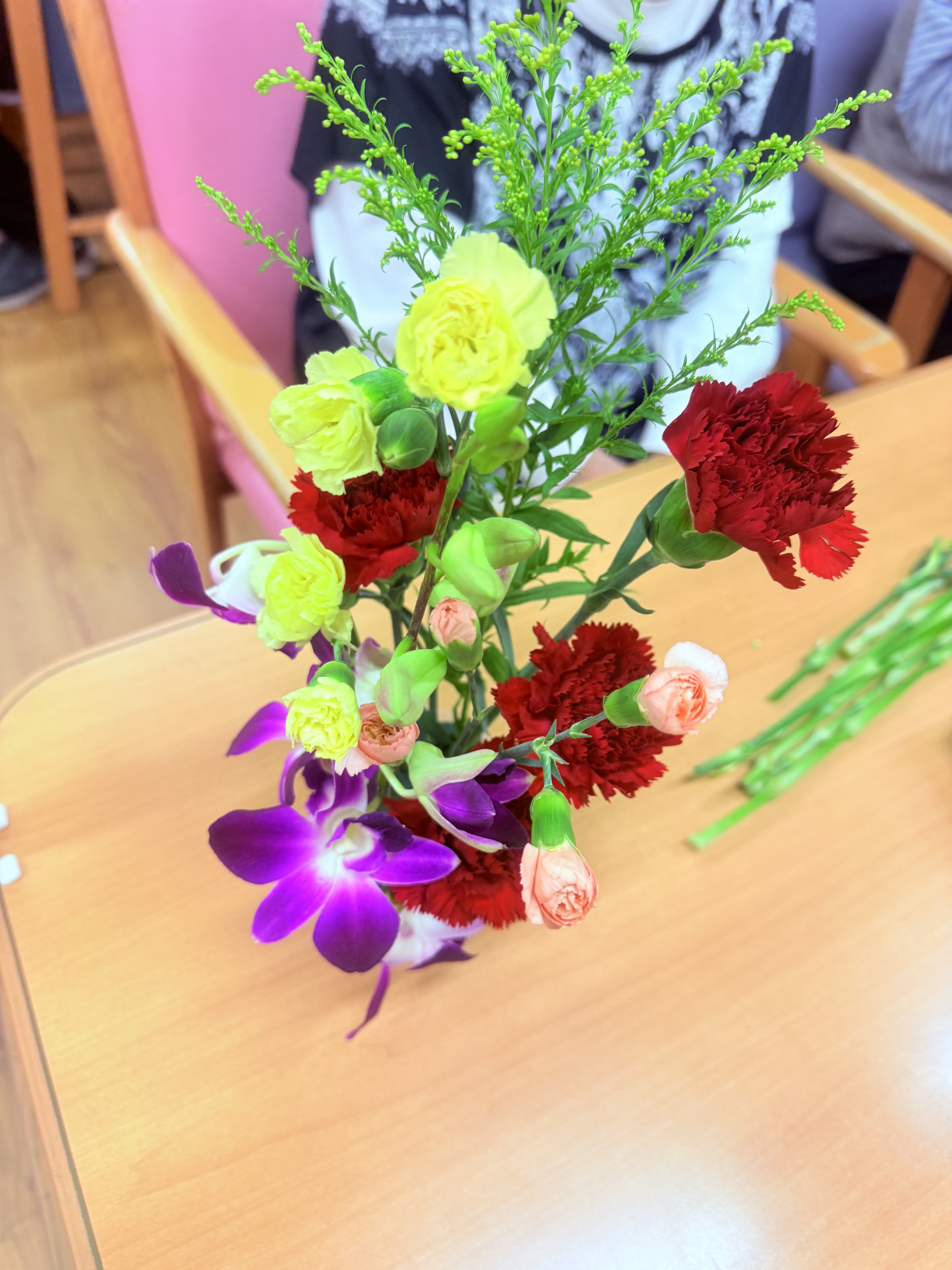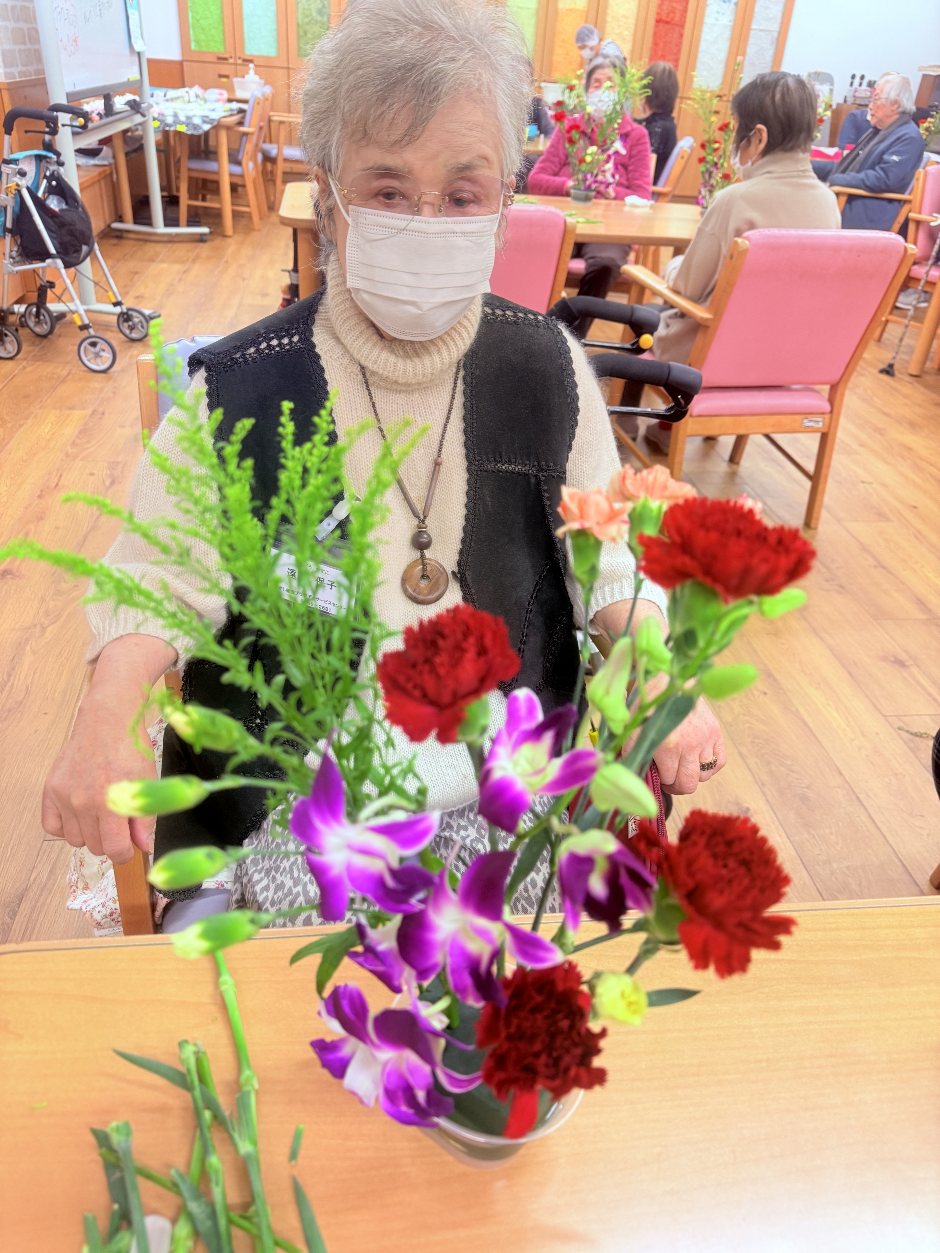 2025.11.27 活動報告 フラワーアレンジメント Tweet シェアする 今日はボランティアの先生が来て下さり、フラワーアレンジメントを楽しみました。先生に教えて頂きながら、オリジナルの作品を作りました。 ひがしデイのゴーティモ 次の記事 2025.11.25 活動報告 塗り絵 一覧へ戻る