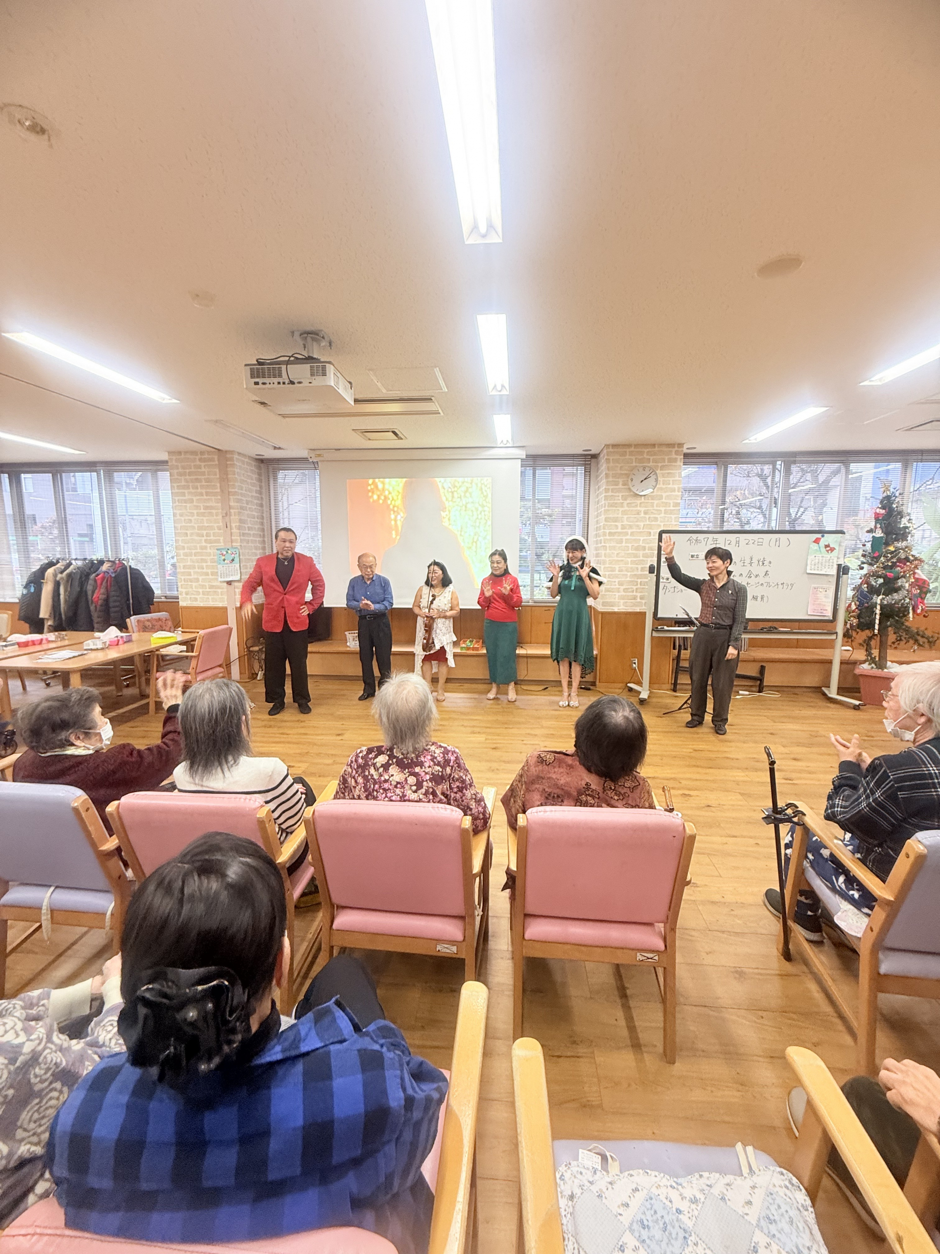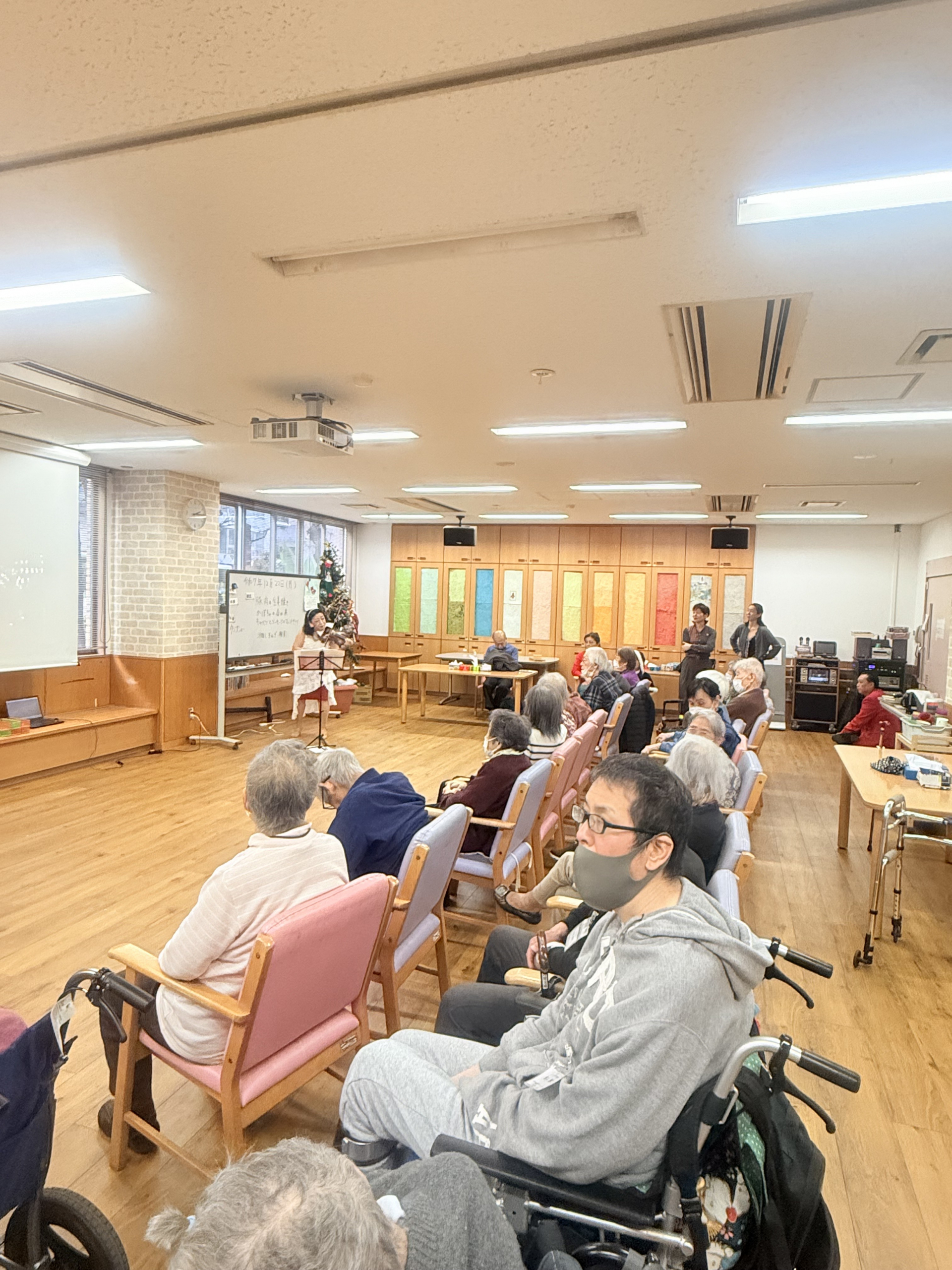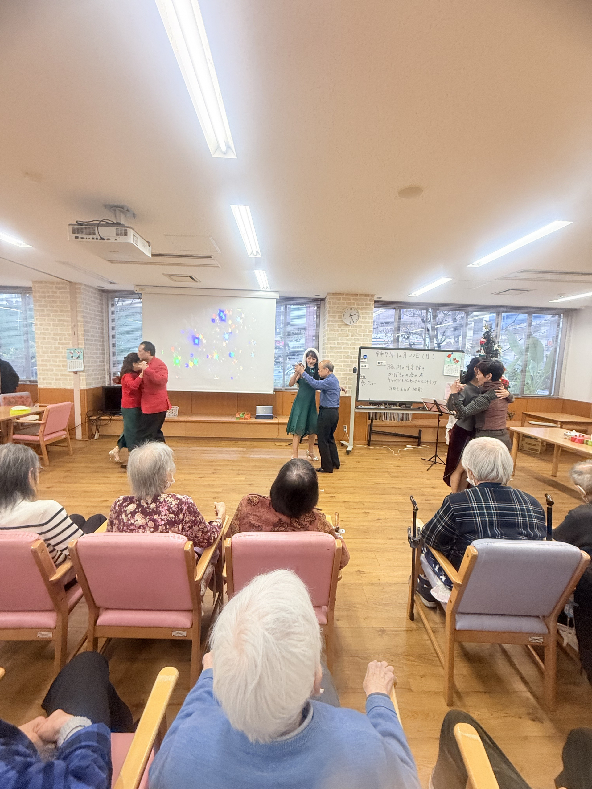 2025.12.22 活動報告 タンゴショー Tweet シェアする 本日はタンゴショーのボランティアの先生が来て下さっております。バイオリンの演奏を聴き、タンゴを観て楽しみました。 ひがしデイのゴーティモ 前の記事 2025.12.25 活動報告 クリスマス会 次の記事 2025.12.19 活動報告 選択プログラム 一覧へ戻る