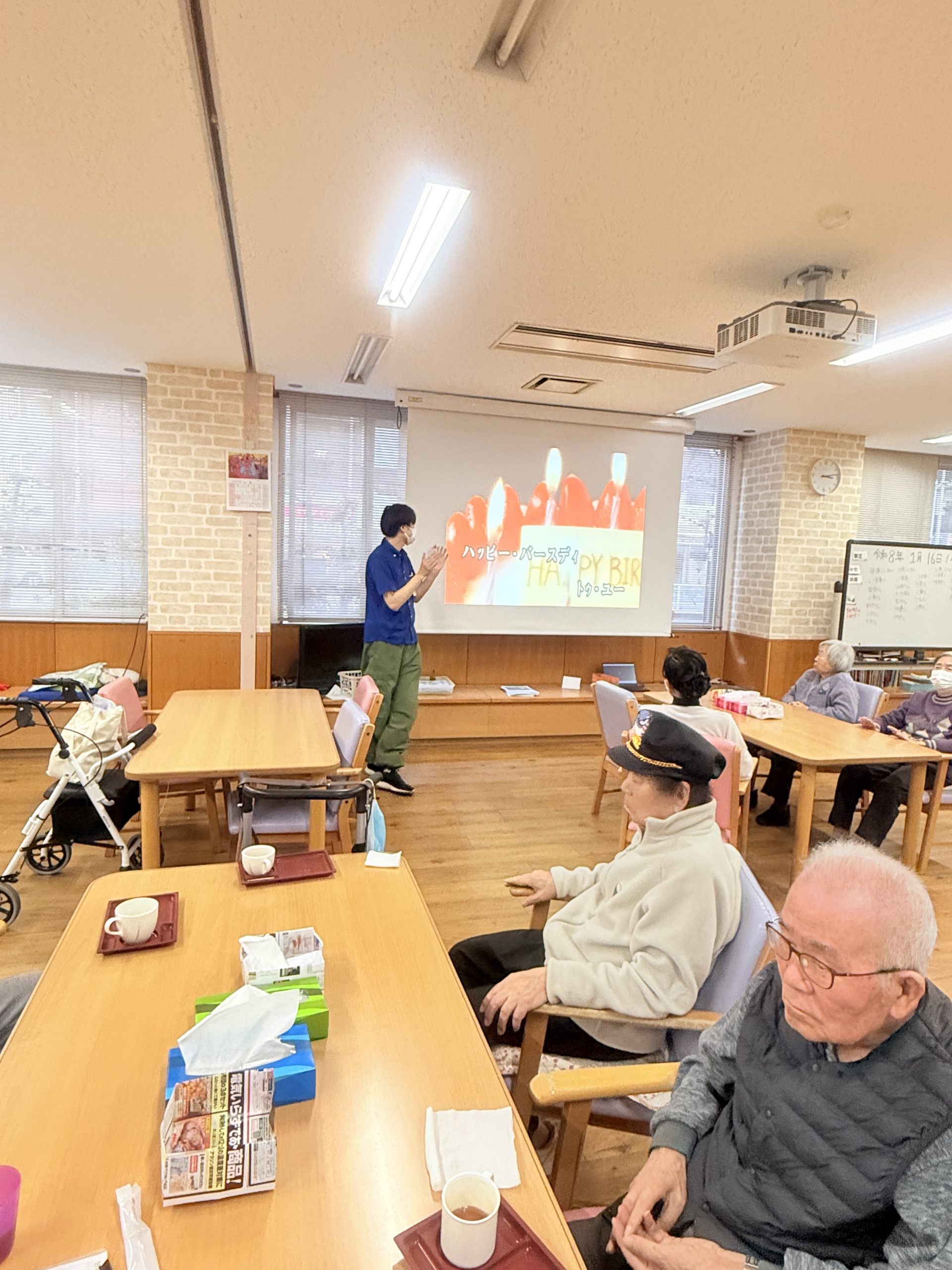 2026.01.10 活動報告 お誕生日会 Tweet シェアする 本日はお誕生日会がありました。皆さんと一緒ハッピーバースデーの歌を歌いました。笑顔が見られました。 ひがしデイのゴーテイモ 前の記事 2026.01.12 活動報告 ゲーム(傘雨) 次の記事 2026.01.09 活動報告 並び替えクイズ 一覧へ戻る