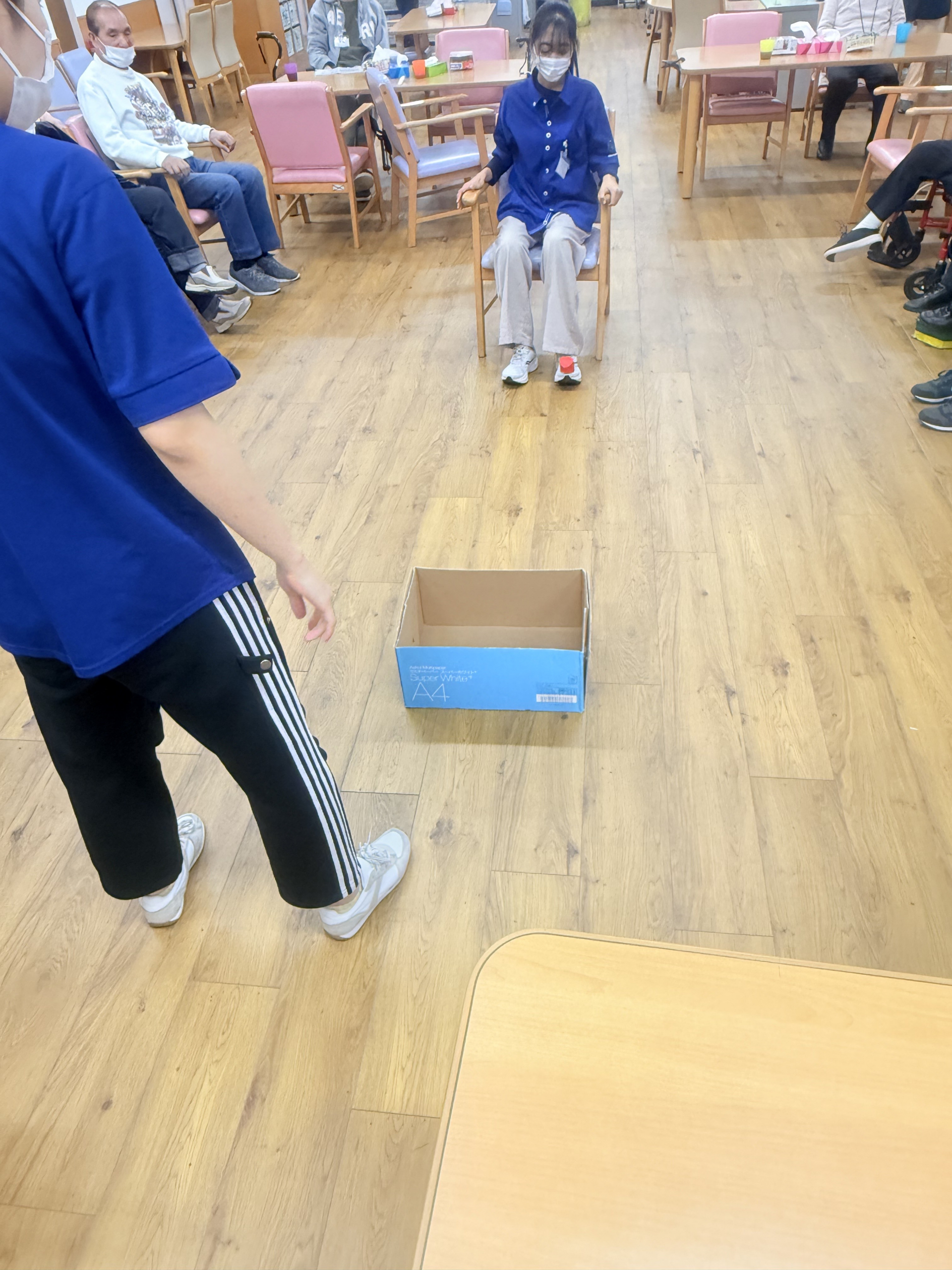 2026.01.14 活動報告 ゲーム(ボール飛ばし) Tweet シェアする 今日は「ボール飛ばしゲーム」でした。「足の甲に小さなボールを載せて、せーので段ボールの中に入れる」というのを行いました。 ひがしデイのゴーティモ 前の記事 2026.01.15 活動報告 落語 次の記事 2026.01.12 活動報告 ゲーム(傘雨) 一覧へ戻る