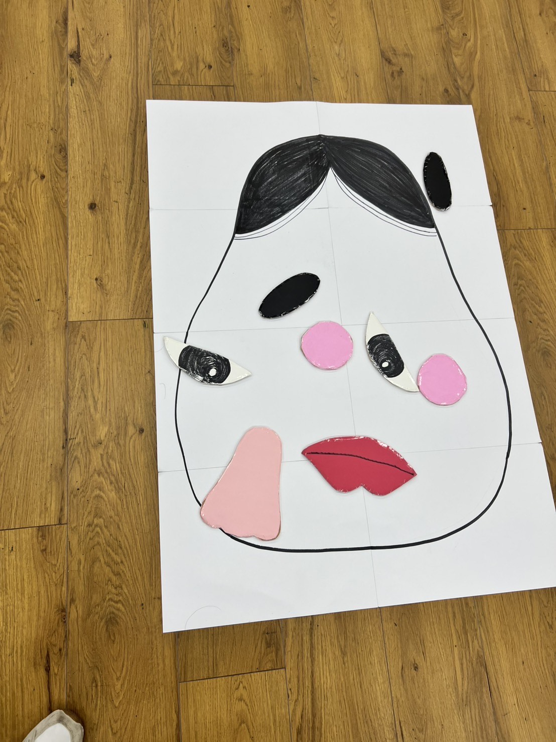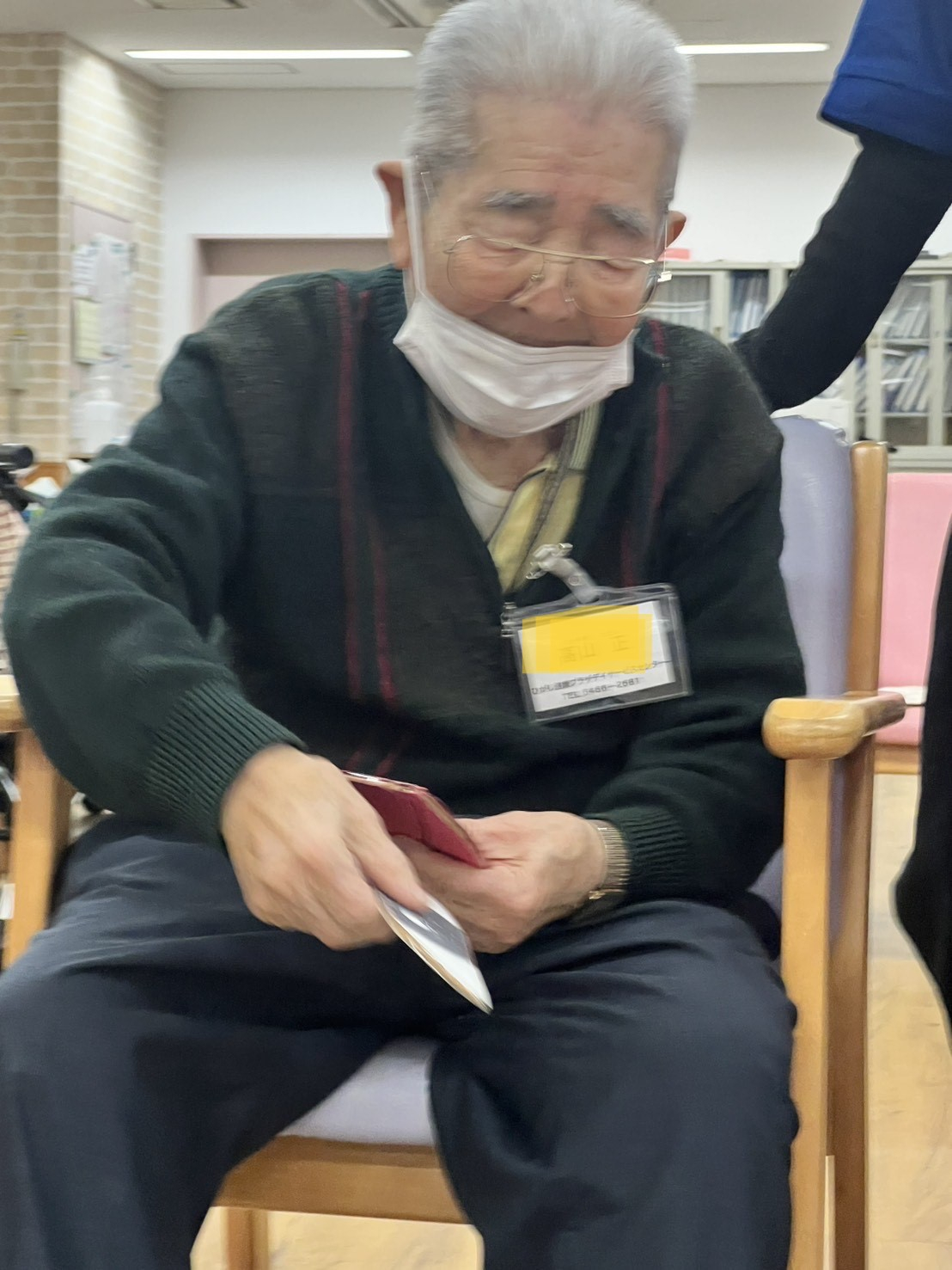 本日は看護実習生さんによる「福笑いゲーム」でお楽しみいただきました。のっぺらぼうに向かって、目や鼻などのパーツを投げます。なかなか思うところには行かない分、いろいろな面白い顔が出来上がりました。
