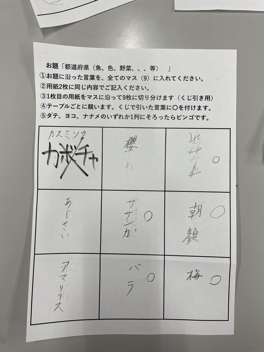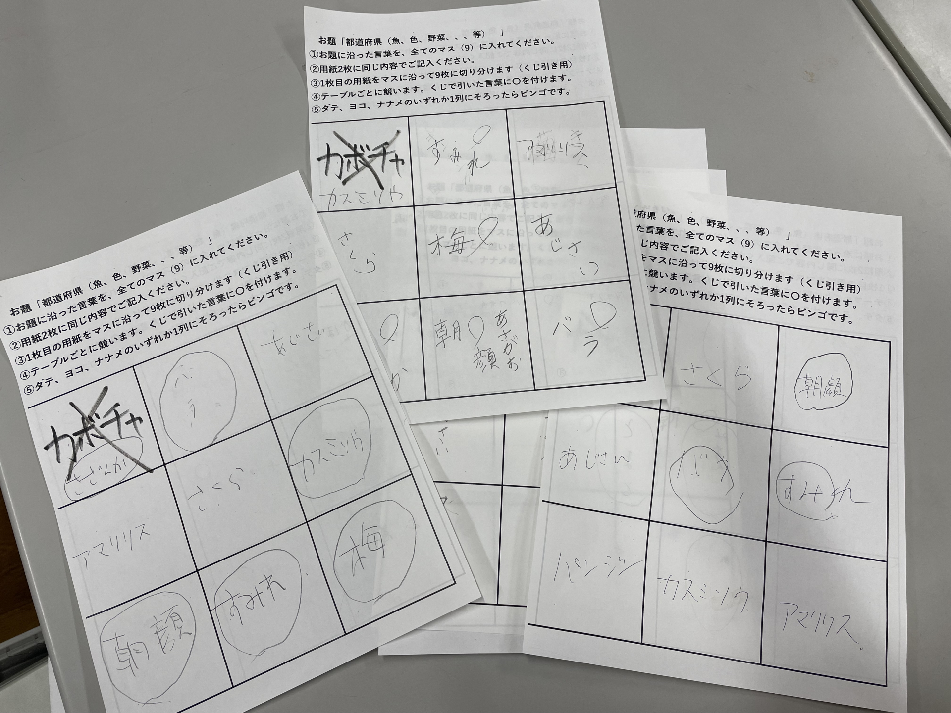 それをくじで引いていって、自分たちで作った手作りビンゴカードにあれば