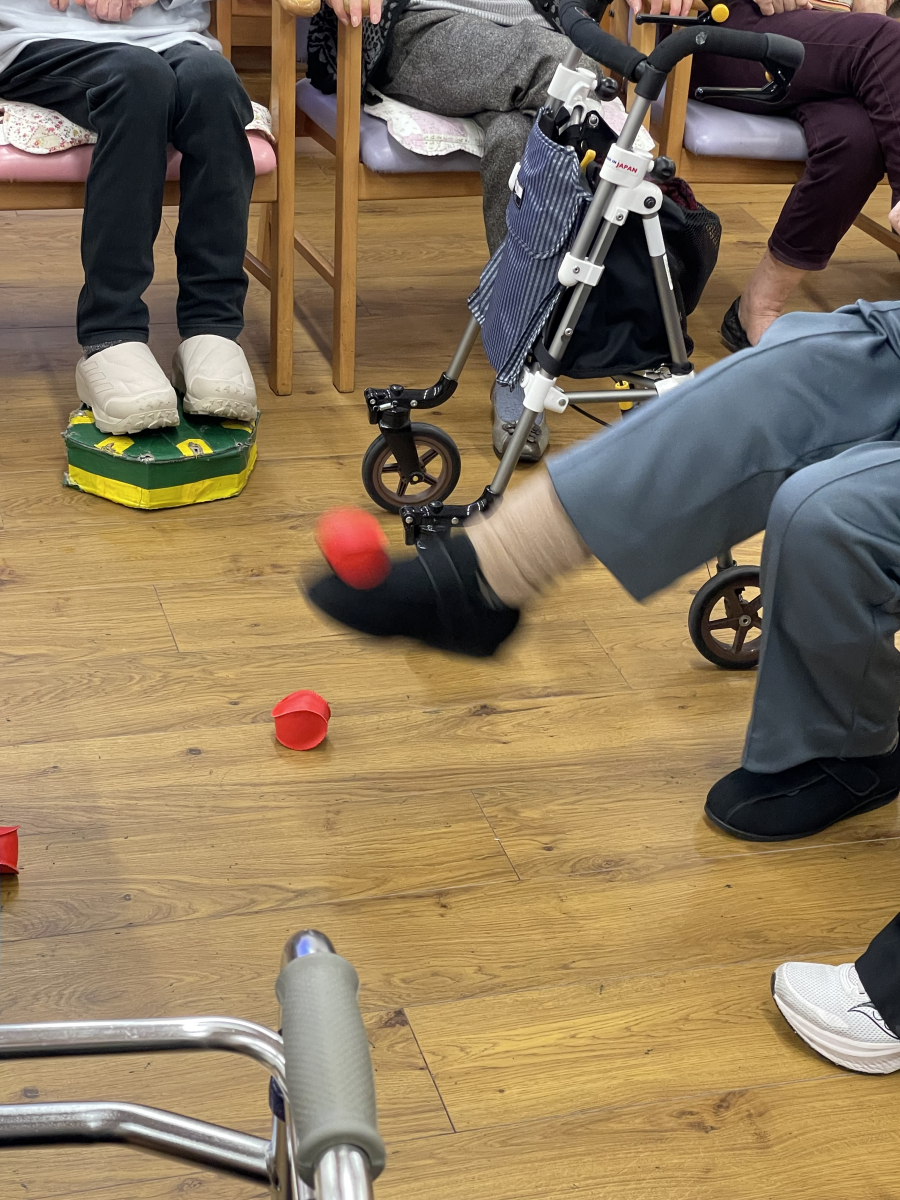 今日は、先日午後のレクとして行った「ボール飛ばしゲーム」をご紹介します。