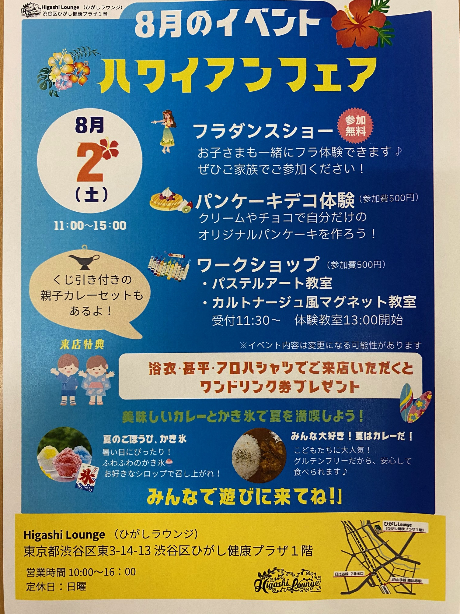 8/2(土)Higashiラウンジでハワイアンフェア開催します!