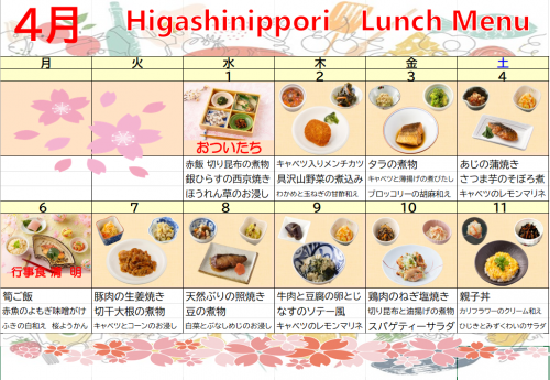 2026.04.02 【東日暮里デイ】4月分の献立表です 活動報告 #おいしい #食事 #献立 #春 2026.01.02 【東日暮里デイ】1月の献立表 お知らせ #奉優会 #デイサービス #お食事 #おいしい #献立 #東日暮里サービスセンター 2025.09.02 【東日暮里デイ】9月献立表 活動報告 #デイサービス #お食事 #食事 #東日暮里サービスセンター #献立 2024.12.02 【本日の美味しい一枚】 お食事 #東日暮里サービスセンター #デイサービス #献立 #田舎ちらし寿司 2024.11.16 【11月18日からのお献立】 お知らせ #東日暮里サービスセンター #デイサービス #高齢者 #献立