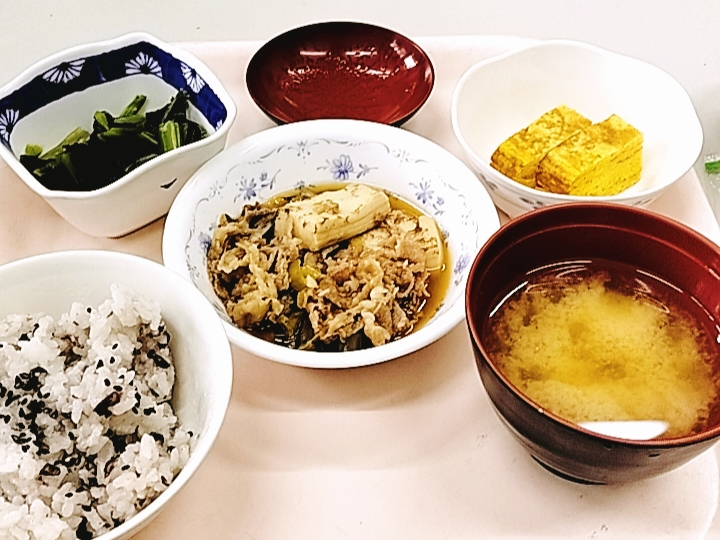 今月は”お赤飯”に”牛肉と焼き豆腐のすき煮”でした