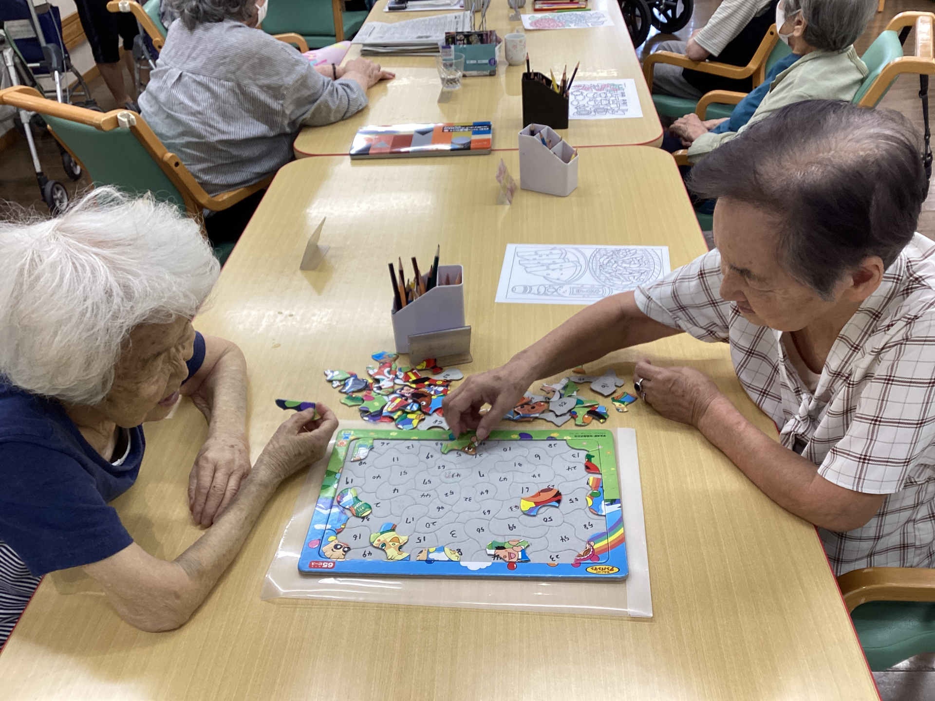普段はあまりお話しされる機会の少ないご利用者様同士でも、「一緒にやってみましょうか」と