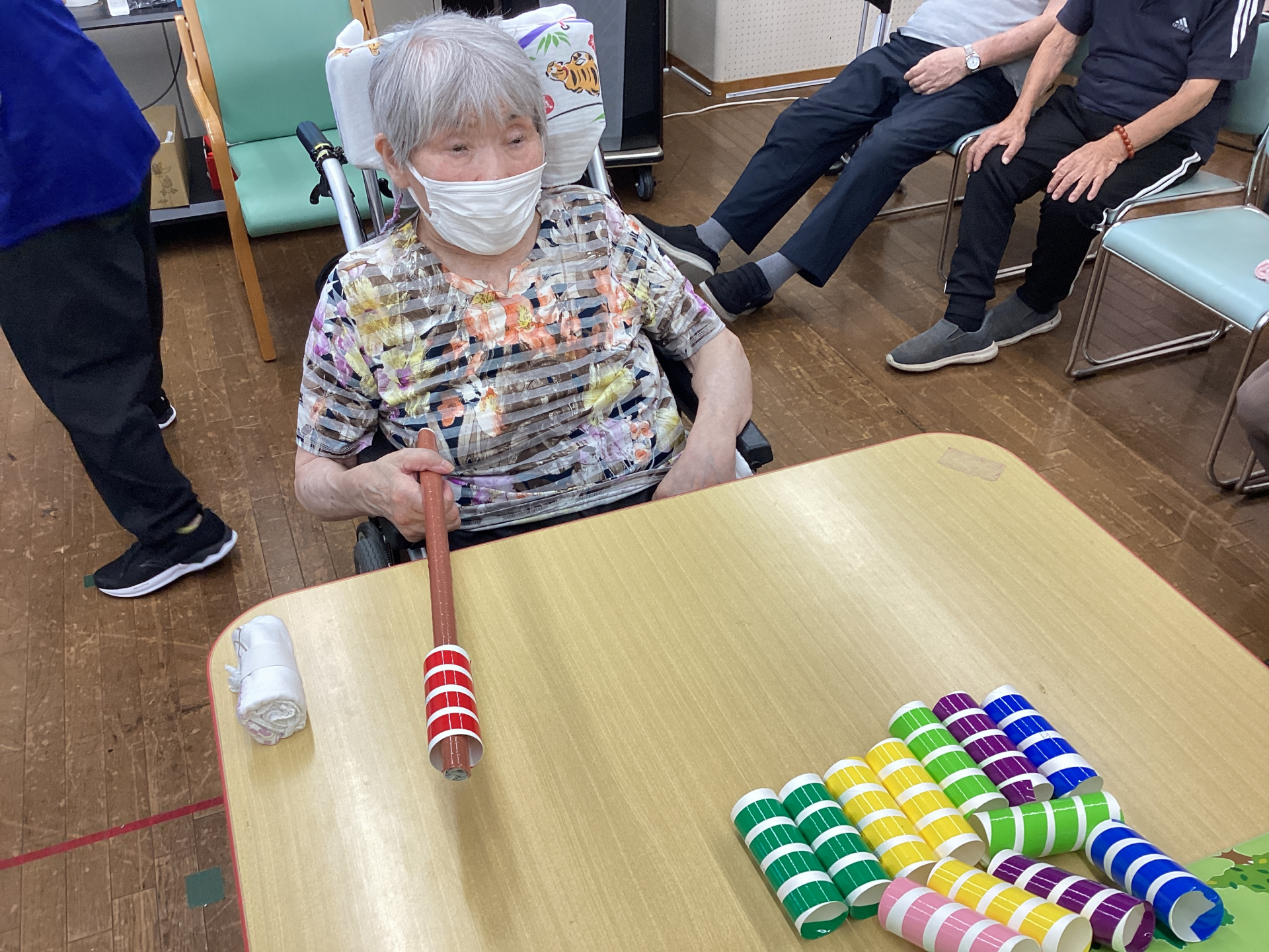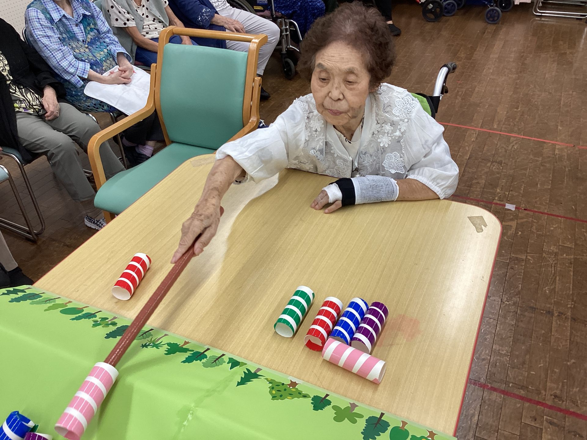 本日のレクレーションは、山越えてポイポイゲームを行いました。