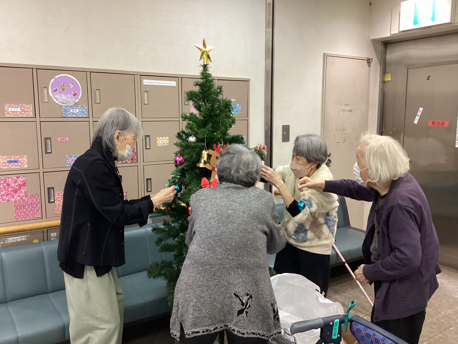 本日は、利用者の皆さまと一緒にクリスマスツリーの飾り付けを行いました🎄