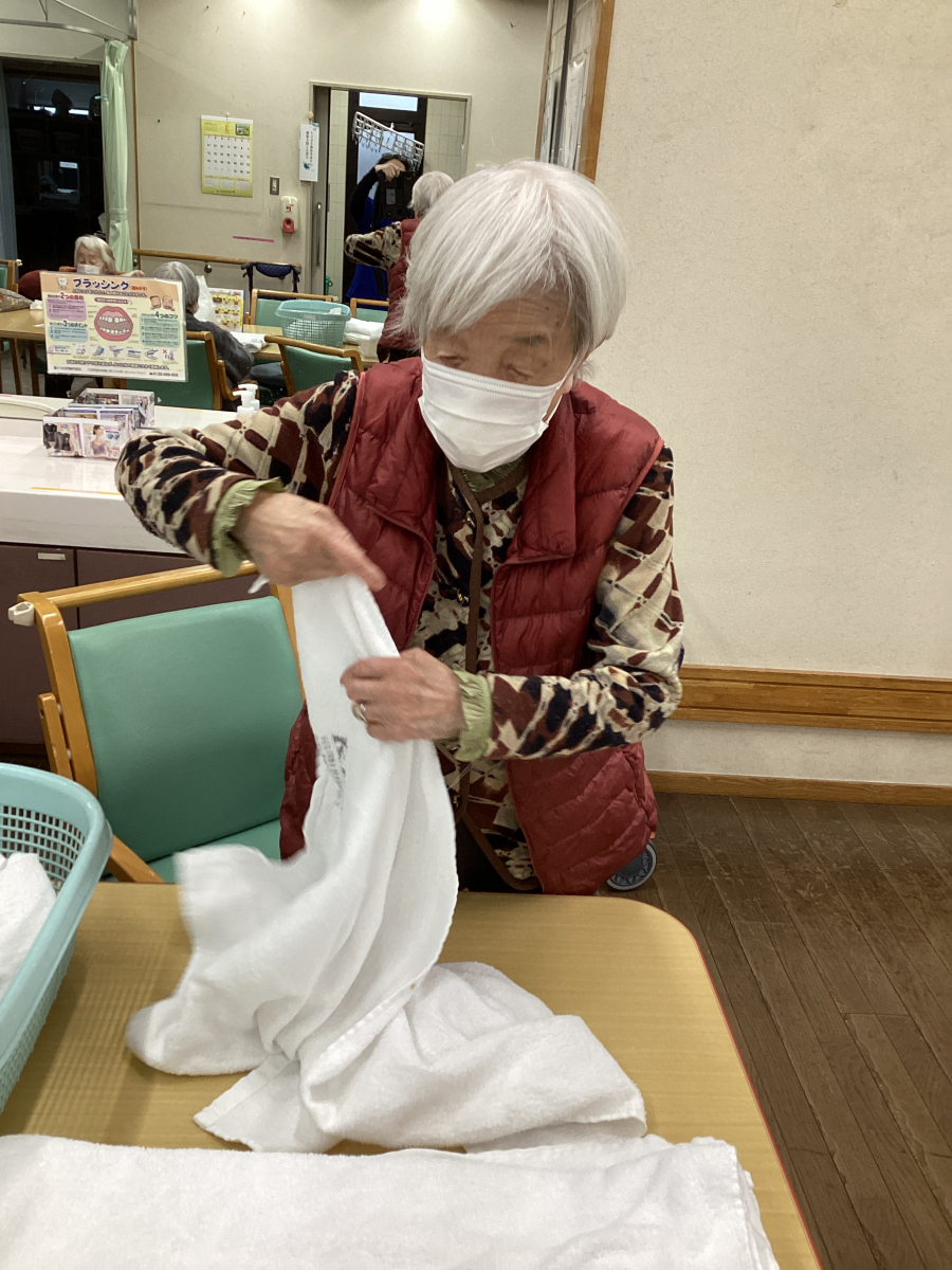 カラオケをしたり、お好きな歌手の映像をご覧いただいたり、タオルたたみのお手伝いをしていただいたり