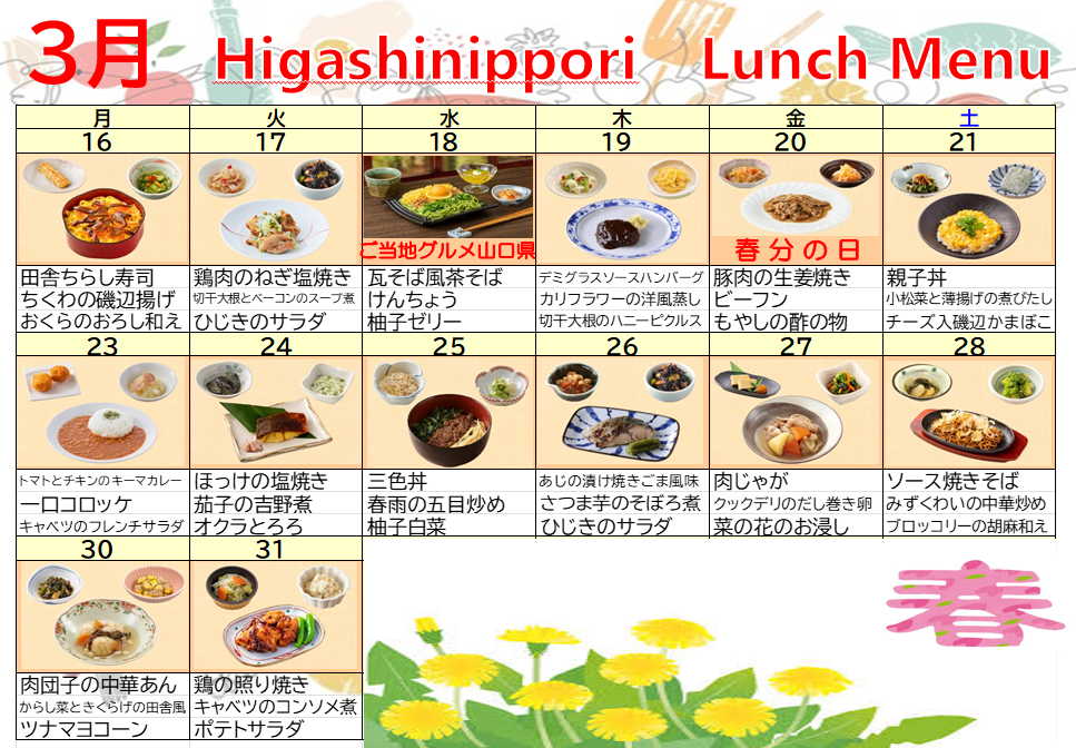 【東日暮里デイ】3月の献立表をお届けいたします♪