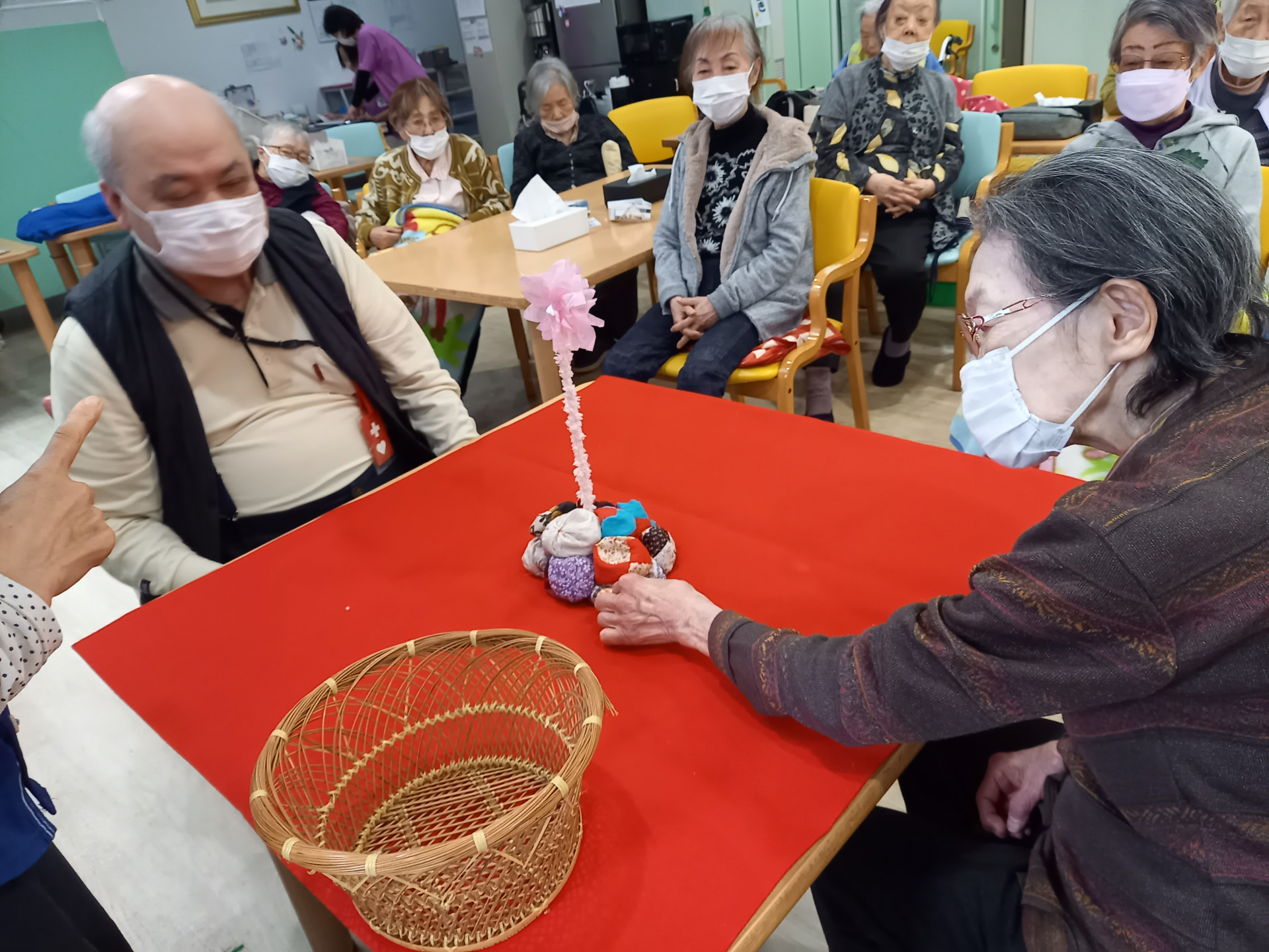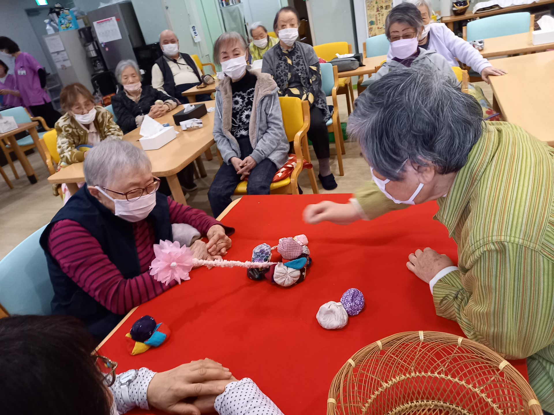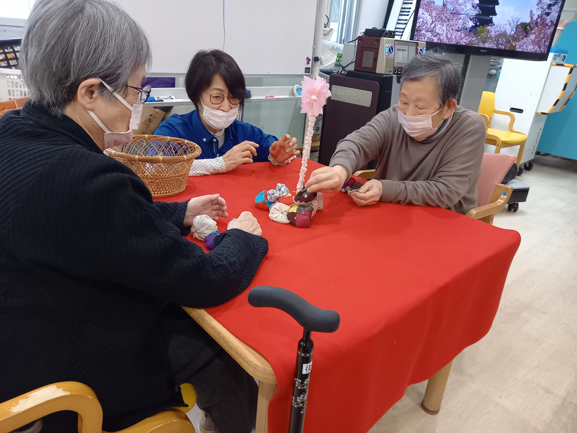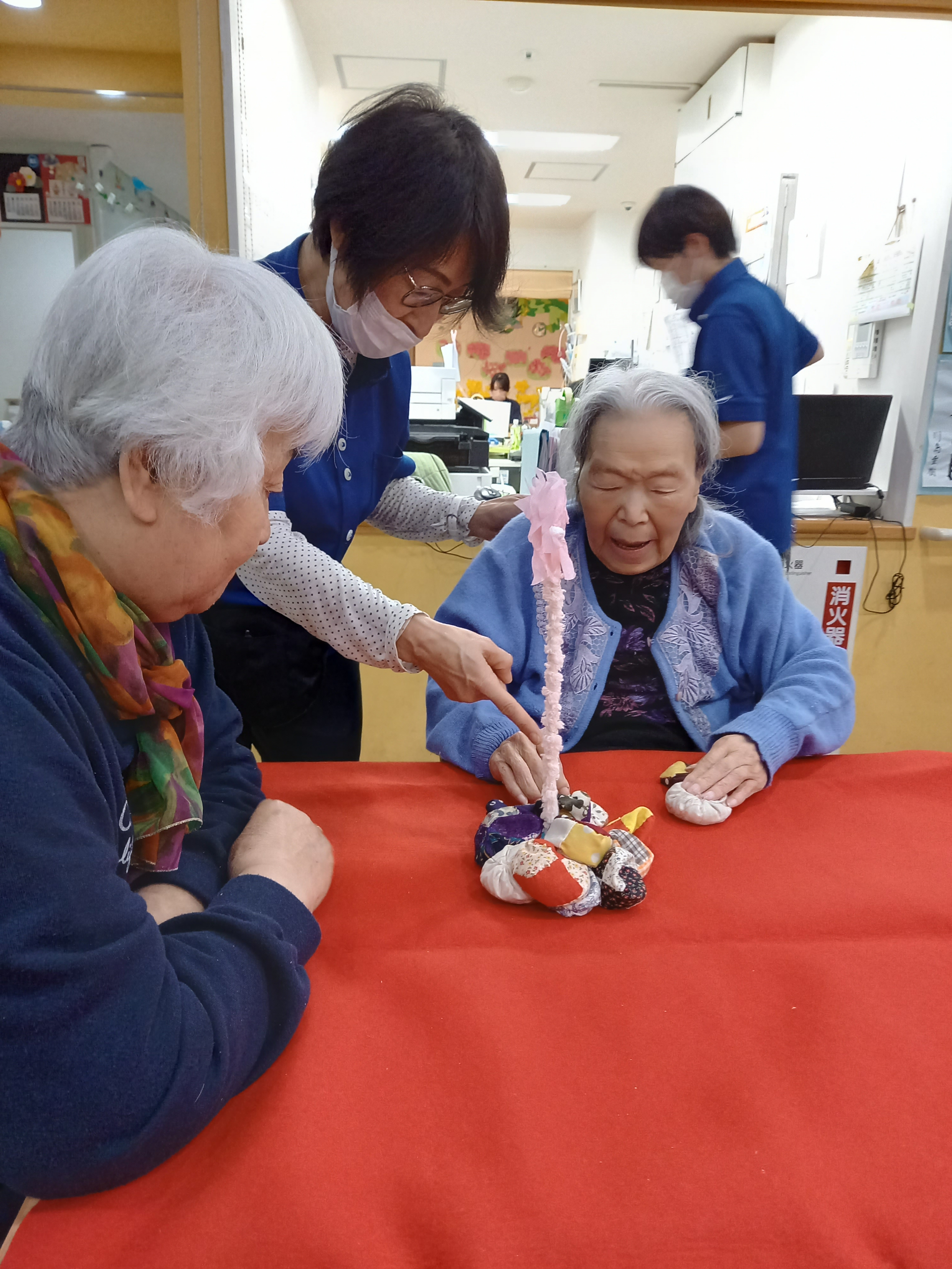 棒のまわりにはみんな大好きお手玉を積んでます。