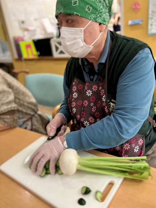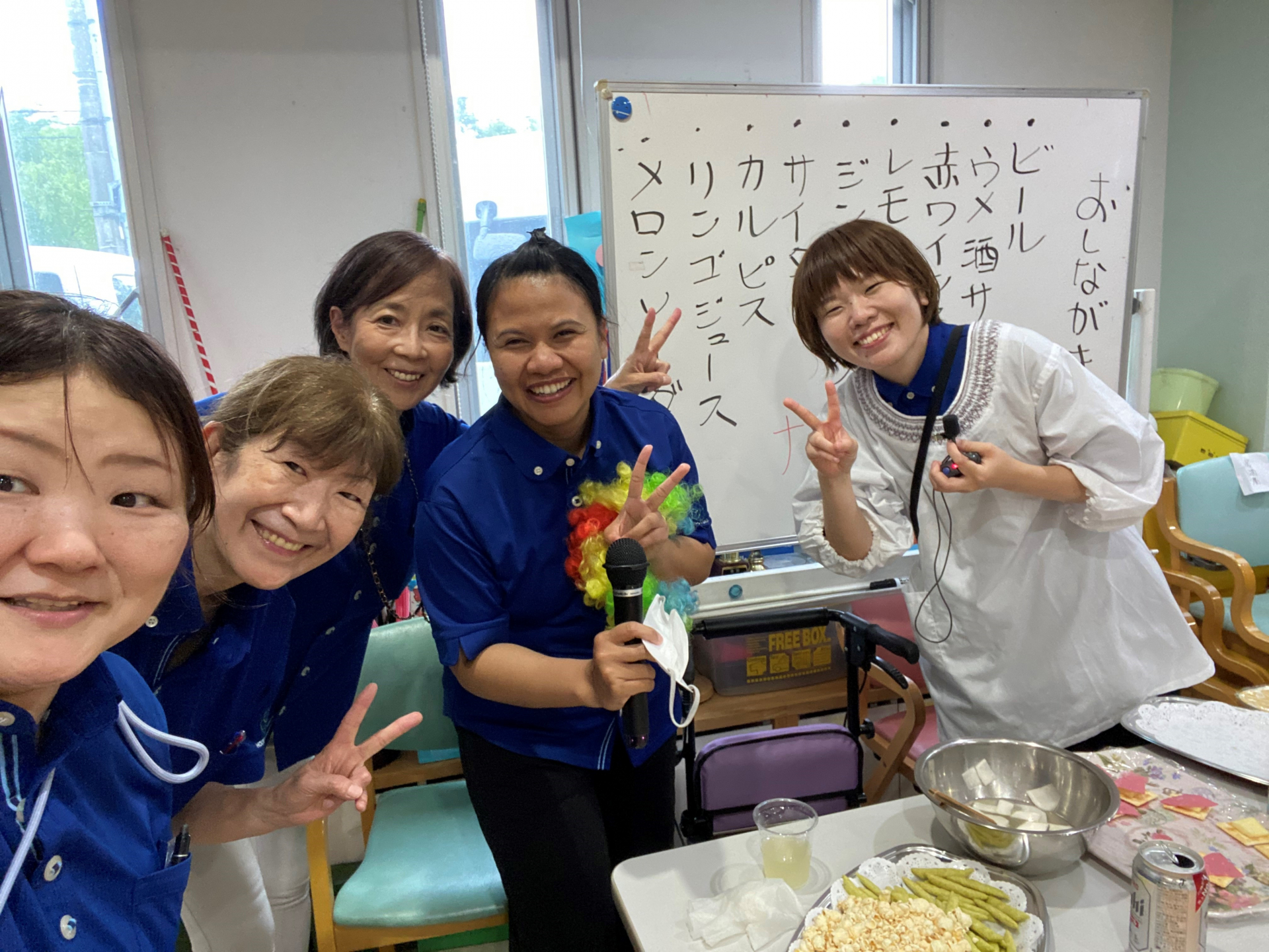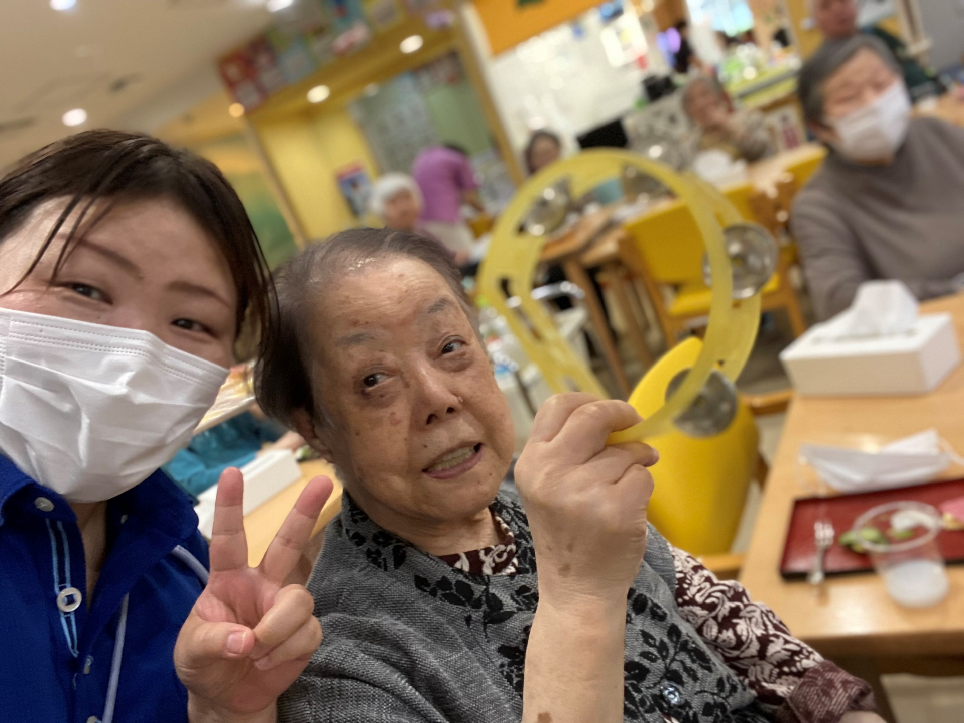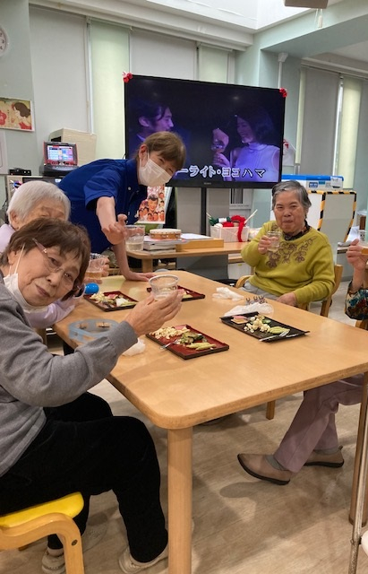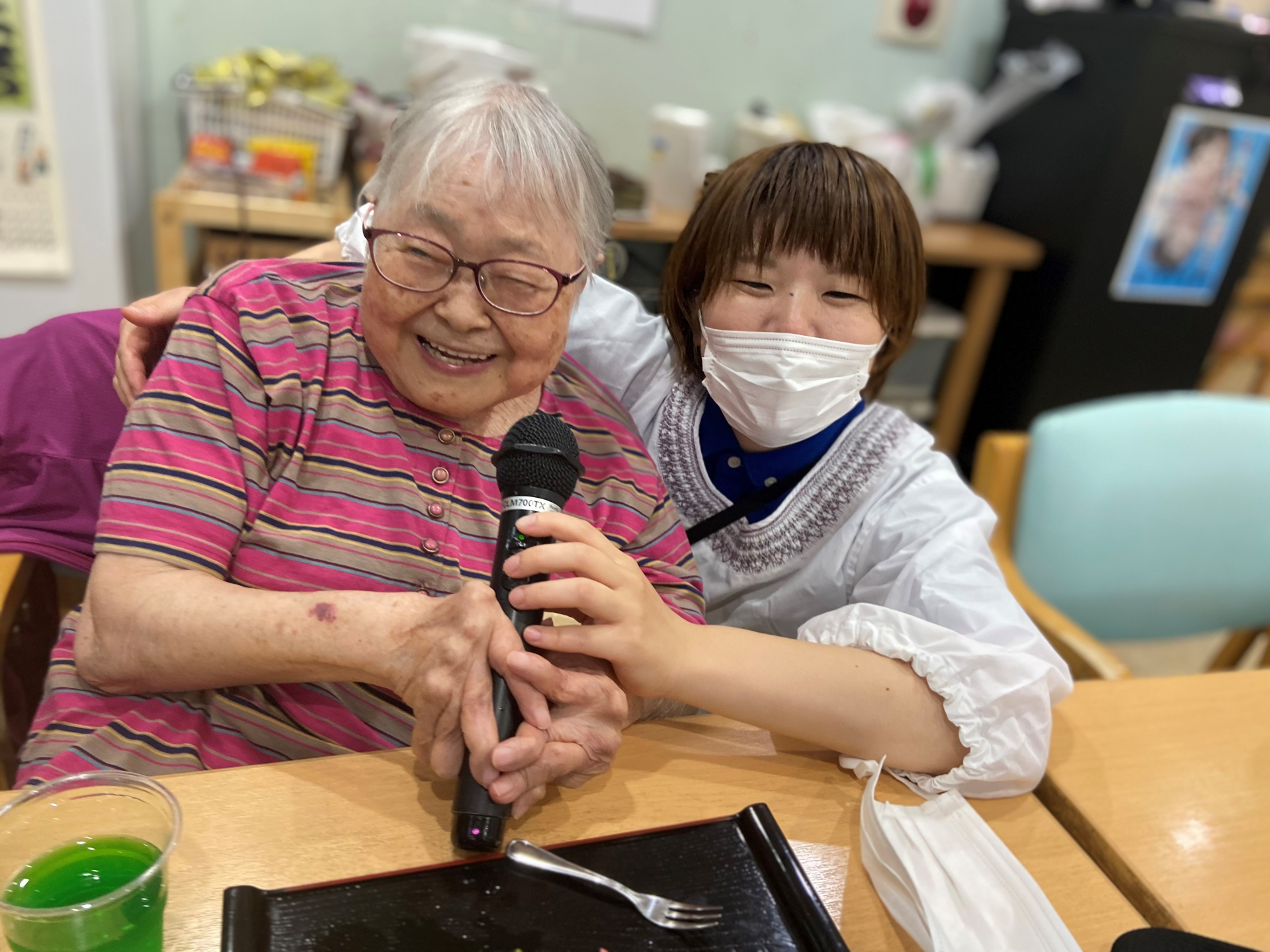 割烹着を着たお姉さんも隣で一緒にうたいますよ~♪