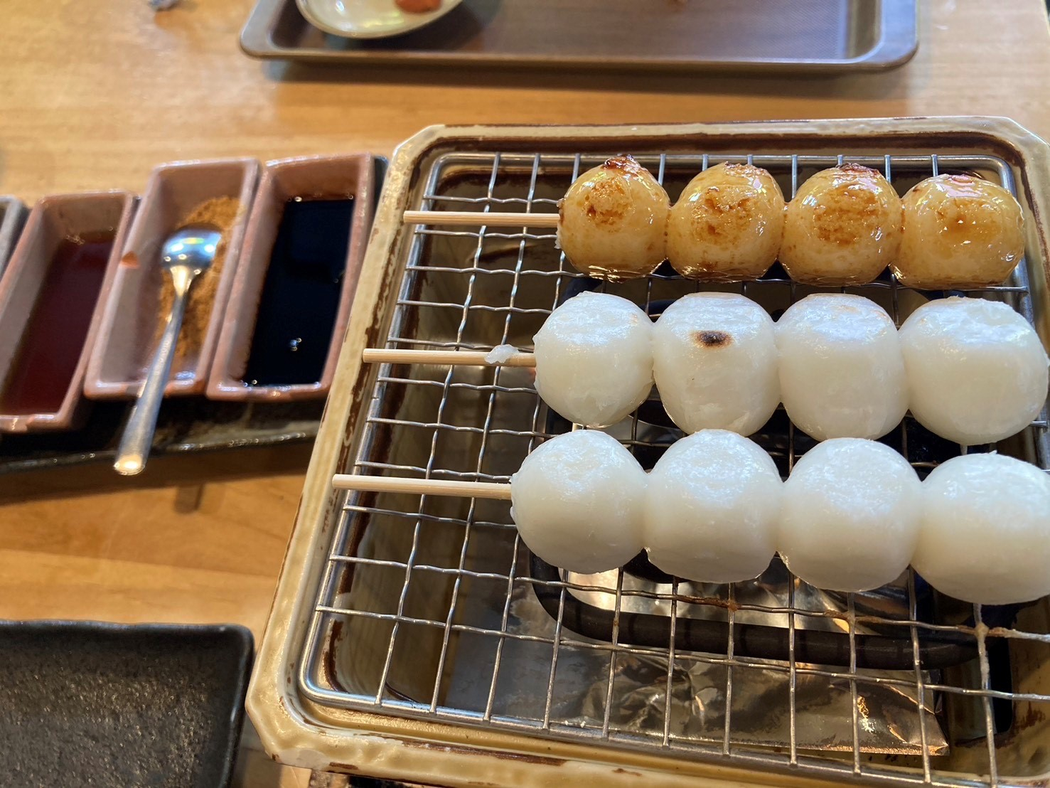 網焼きの機械に団子をのせて焼いてお好きな味にしてみても良いですよね。